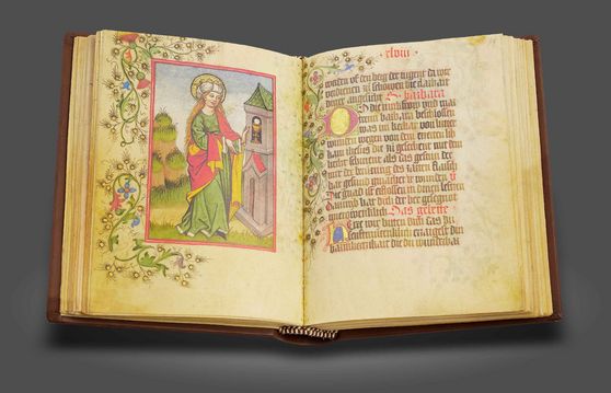 One of the few surviving illuminated German language prayer books: a magnificent work adorned with 46 beautiful miniatures of exceptional quality for the imperial steward and his wife