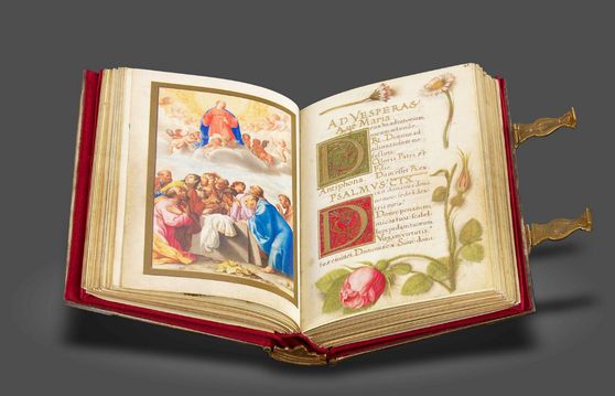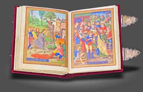 An exquisitely illuminated Renaissance masterpiece with a story worthy of a crime novel: begun by Giovan Pietro Birago, then stolen, completed by Gerard Horenbout, and now divided into four volumes due to its more than 200 beautiful miniatures