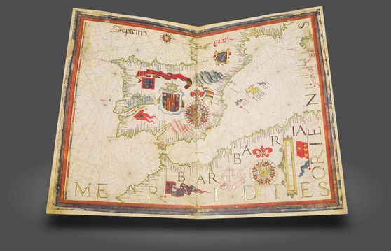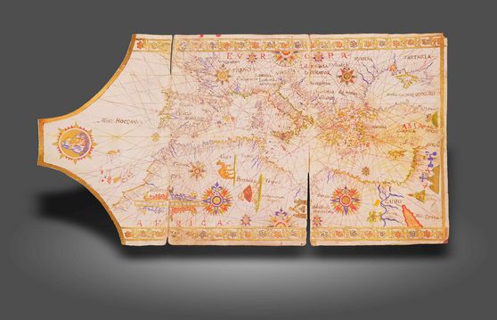 A splendid example of portolan maps from the late Mallorcan school originating in Messina: an artistic and surprisingly precise depiction of the Mediterranean Sea and its adjacent regions