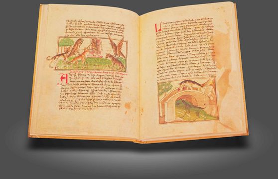 Civic lay book art in Tuscany between the Middle Ages and the Renaissance: an Italian vernacular adaptation of Aesop's fables and other works, with 64 expressive washed pen-and-ink drawings
