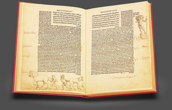 Biting mockery at the time of the Protestant Reformation: Erasmus of Rotterdam's personal copy of his witty criticism of the church and society, decorated with artistic marginal drawings by Hans Holbein the Younger