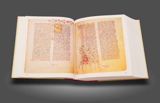 These include magnificently illuminated book treasures such as the Codex Aureus of Echternach with its luxury binding, the Grandes Heures du Duc de Berry by the Limbourg brothers, the Breviario Grimani, and the Egyptian Book of the Dead on genuine papyrus.