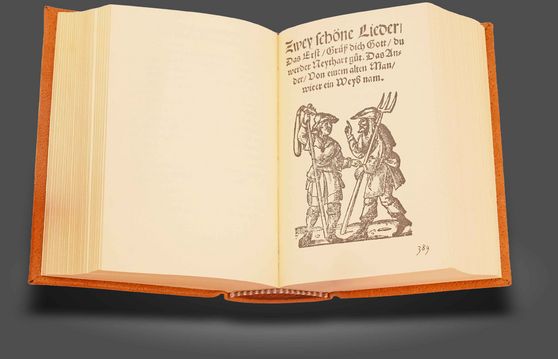 An impressive compilation of German folk songs from the 15th and 16th centuries: 71 individual prints with charming woodcuts, united into a fascinating miscellany and testimony to popular Renaissance poetry