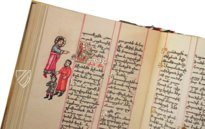 Armenia was one of the first Christian kingdoms in history and was able to remain an independent realm despite being surrounded by Muslim territories due to its mountainous territory and the fierceness of Armenian knights. The country also has its own artistic traditions with influences from Byzantine art, which endured even after the fall of Constantinople roughly 150 years before this work was created in the early 16th century. Armenian was one of the first national languages that the Bible was translated into, which was completed in the 434 by a group of Armenian scholars who had journeyed to Constantinople to acquire authoritative texts in Greek. The Armenian Bible includes 26 full-page miniatures with rich opaque and the generous use of gold leaf. It is considered to be one of the most important European Bibles and is protected by a ribbed silver binding with rosette patterns and a Greek cross.