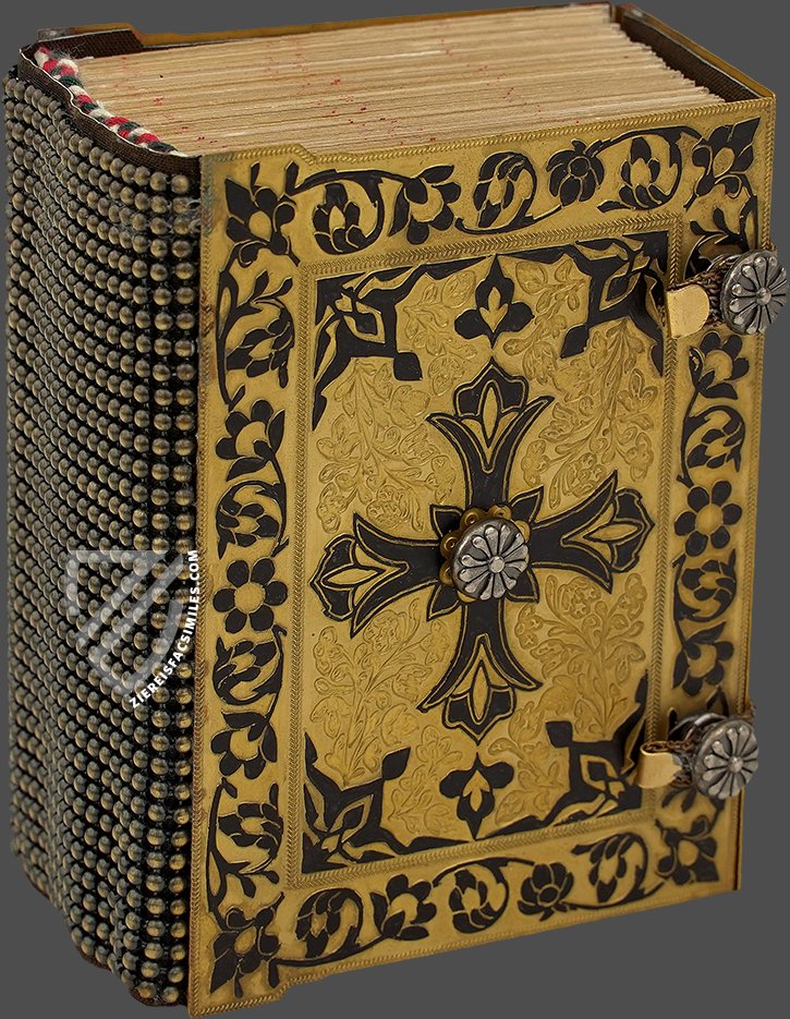 A wonderful parchment manuscript with the text of the Gospels originated in the vicinity of Edessa at the beginning of the 17th century. 26 full-page miniatures enrich the biblical text, which is arranged in two columns. Upon first glimpsing the luminous paintings, one can hardly believe that they are already centuries old. Actually, this is one of the only examples of Armenian illumination to have survived to the present. In fact, the patron of the manuscript is unknown, but some conclusions can be drawn about its previous owners. In the year 1742, Patriarch Abraham Bedros I Ardzivian (1679β1749) gave it to Pope Benedict XIV (1675β1758) on the occasion of his consecration in Rome.