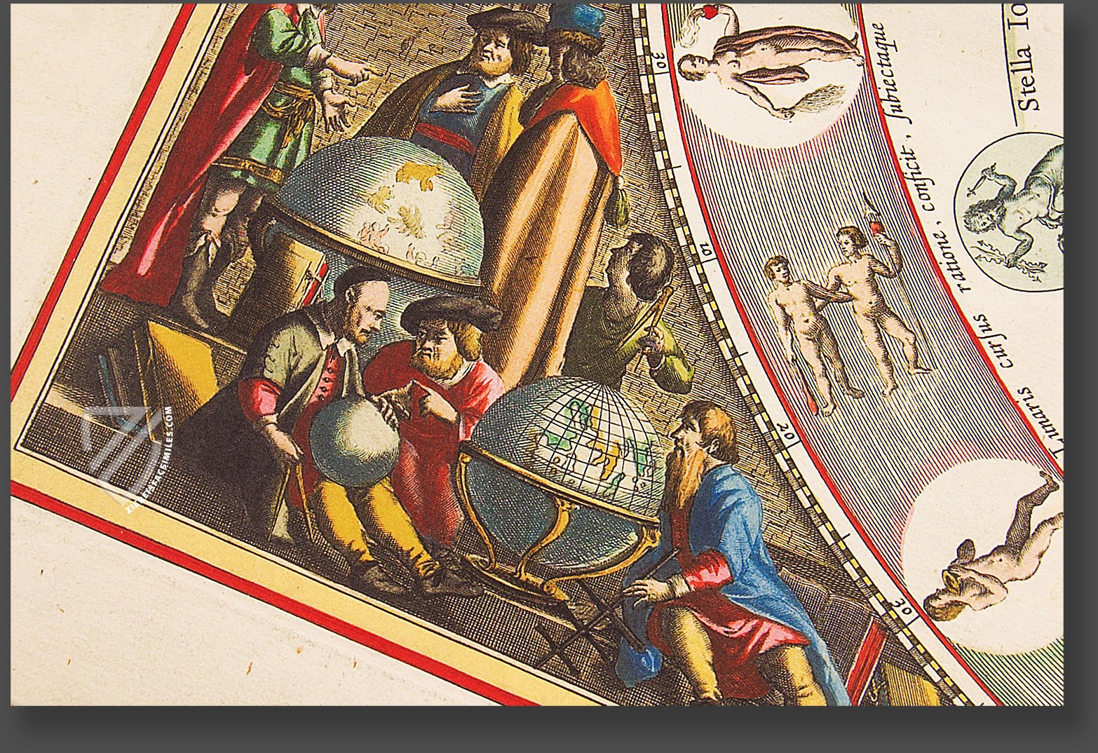 The Atlas Harmonia Macrocosmia by Andreas Cellarius (ca. 1596â1665) is one of the most magnificently colored astronomical works of the Baroque period. The historical star atlas from 1661 shows the world according to models by Claudius Ptolemy, Nicolaus Copernicus, and Tycho Brahe on a total of 21 engravings. Eight further double-paged colored engravings are dedicated to star constellations with classical and Christian interpretations. With his first-class plates by Frederik Hendrik van den Hooven (ca. 1628â1698), Jan van Loon, and Jan Pieterszoon Saenredan (1565â1607), the celestial atlas impressively presents the observer with the development of the astronomical world view.