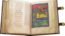 This is a fascinating specimen from the grand tradition of so-called Beatus manuscripts. Saint Beatus of Liébana (c. 730 – c. 800) wrote an authoritative commentary on the Book of Revelation, which was divided into 12 books. It originates from a time when most of the Iberian Peninsula had been overrun by the Moors. Only the Kingdom of Asturias, protected by the Cantabrian Mountains, stood against the Muslim invasion. It was in this precarious situation that Beatus wrote his commentary, and in which its meaning changed. The beast, once representing the Roman Empire, was now replaced by the Muslim Caliphate, and Babylon was no longer Rome, but Córdoba instead. That being said, most of his commentary is actually critical of other Christians, who put their own interests before the will of God, and Muslims are only mentioned in passing. The San Millán Codex also includes the prologue of the Apocalypse that was written by Saint Jerome (347–420), his commentary on the Book of Daniel, and extracts of the Etymologiae by Saint Isidore of Seville (ca. 560–636). 49 full-page miniatures adorn the extensive text, which comprises more than 560 pages. This manuscript represents one of the most complete surviving copies of the famous commentary.