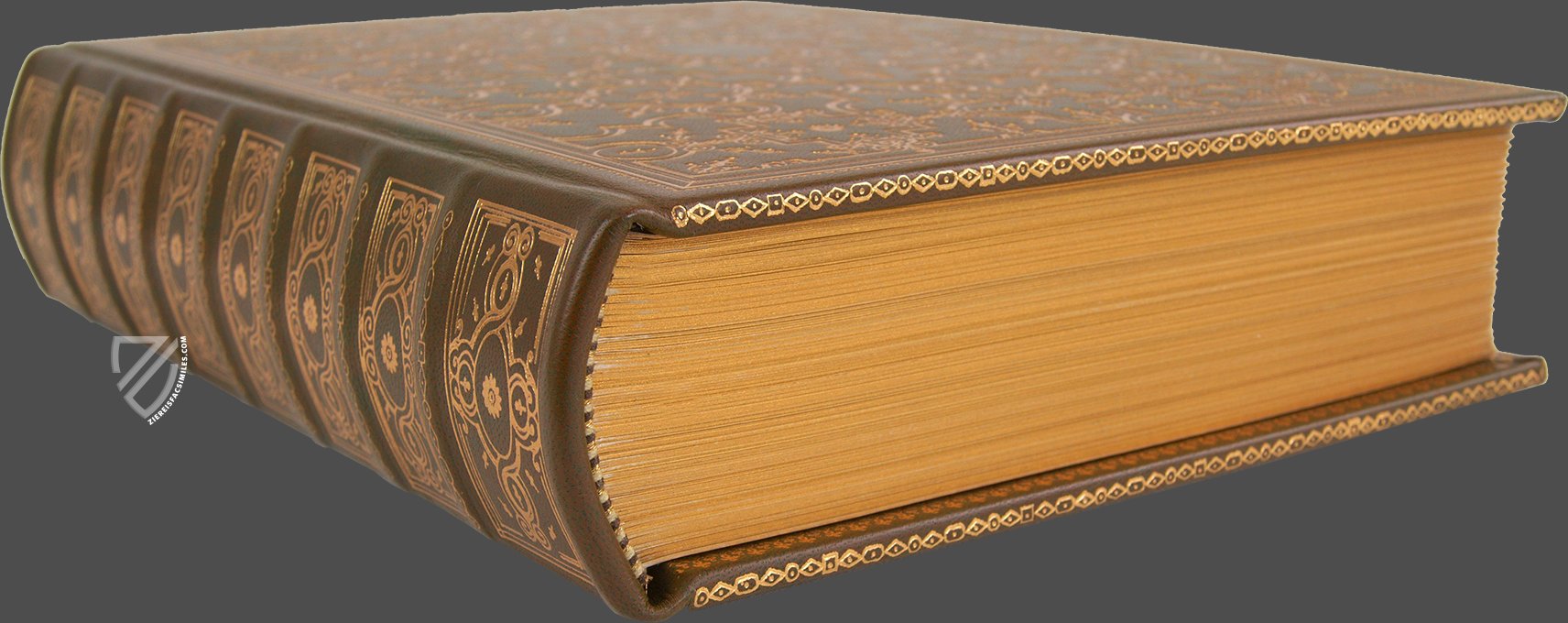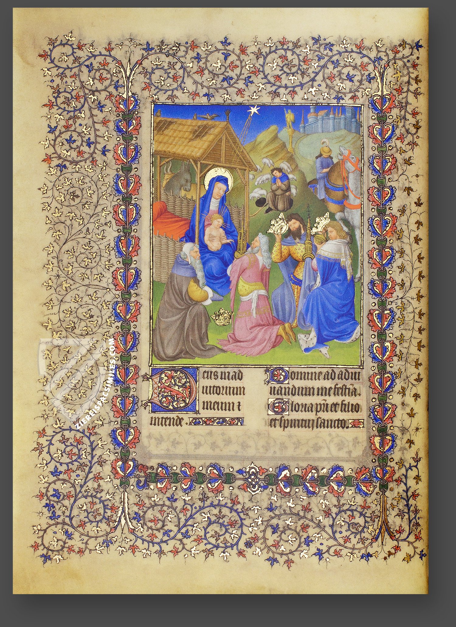 Les Belles Heures du Duc de Berry is the title of one of the most elaborate and richly decorated manuscripts ever created. The work was produced between 1405 and 1409 for Jean de Valois (1340β1416), the bibliophile Duke of Berry. The prayer book for the duke's private devotions was designed by his three court artists, who were probably among the most respected illuminators of their time - the Limbourg brothers. Each page of the work features enchanting illuminations adorned with gold. The manuscript's 172 impressive full-page miniatures inspired the paintings of great Old Netherlandish artists such as Jan van Eyck (ca. 1390β1441). The book decoration is rounded off by luminous ornamental initials and shimmering borders made up of extensive, intricate vine and iyv leaf tendrils. One of the most beautiful and most precious 15th century books of hours and a true treasure of late Gothic book illumination!