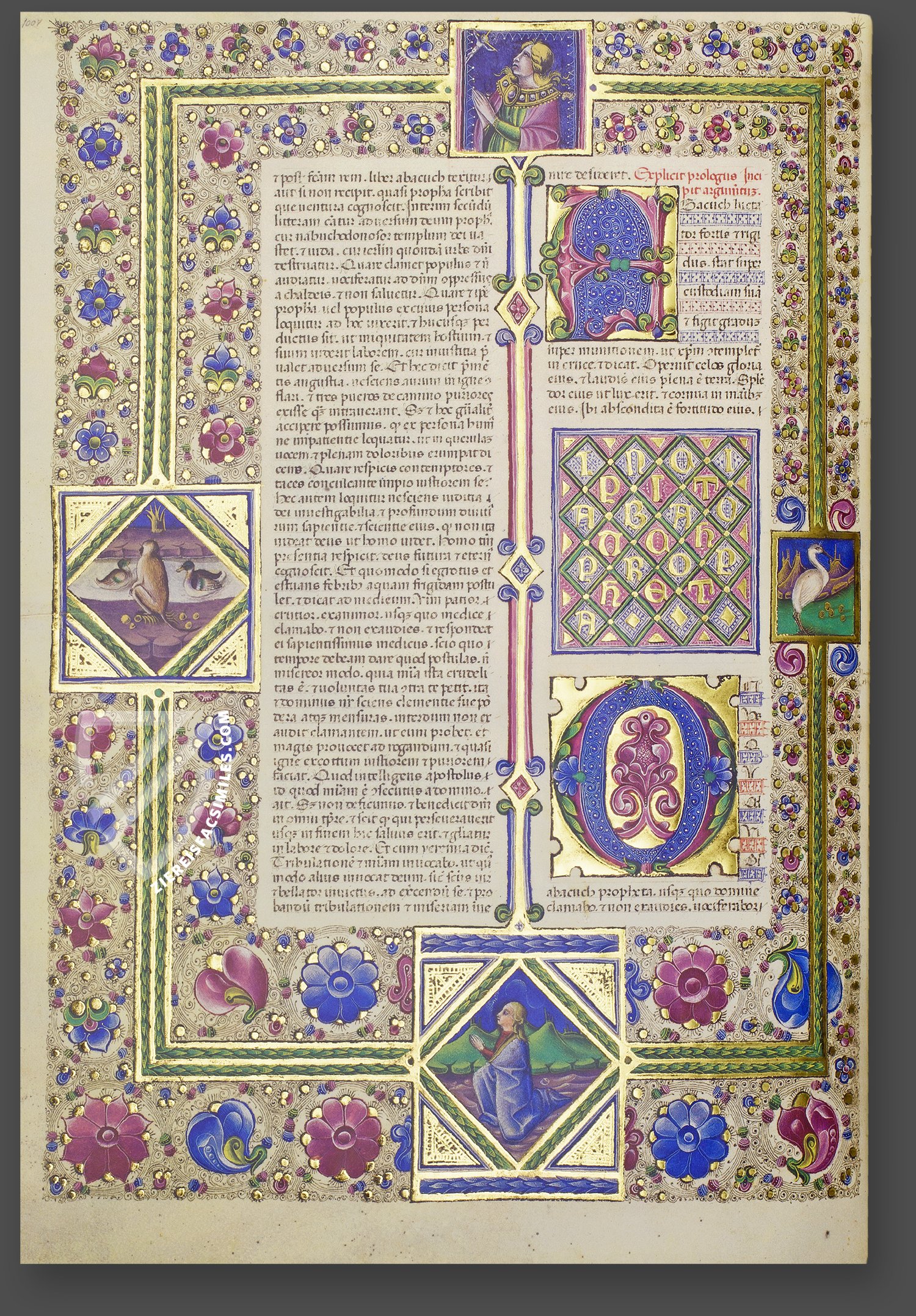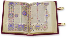 The Bible of Borso dβEste was made between 1455 and 1461 by the most gifted Renaissance artists of Italy at the court of the Count of Este in Ferrara. It represents a highpoint of Italian illumination and combines the realistic painting of the Renaissance with fanciful Gothic stylistic elements in a unique way. Each page of the manuscript is illuminated with impressive diversity.