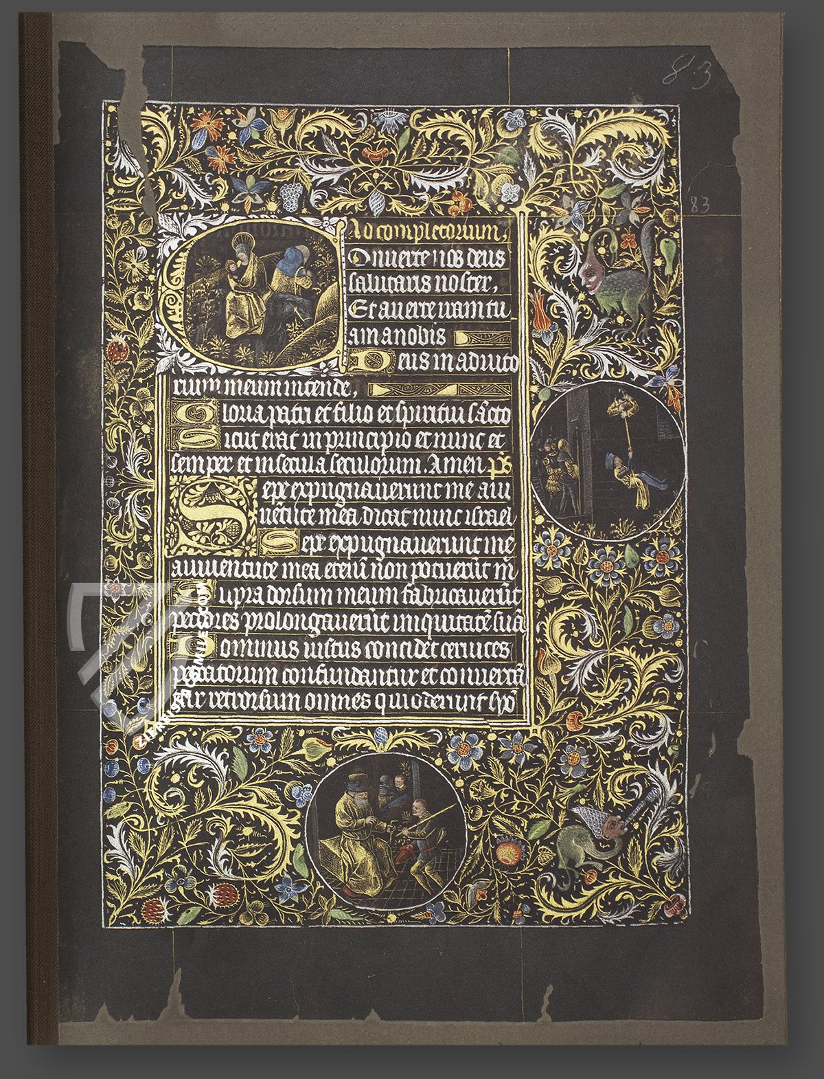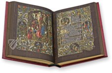 Embellishing marginal ornaments, impressively designed miniatures, splendid initials, wonderful calendar pages, and additional medallions in the splendid frames: the pictorial decoration of the Vienna Black Prayer Book impresses with its abundance of high-quality painting. The luminous pictures and text written in gold and silver come impressively into their own against the dark background of the colored pages, which lend the manuscript its name. This reverse contrast to the typical dark text and imagery against a light background accounts for the special allure of this payer book. On its 206 pages, the manuscript assembles 15 full-page miniatures, 24 smaller ones, and 71 medallions in the margins. These illustrate the prayers according to the Roman liturgy with a special focus on Marian content. The miniatures originate from an unknown artist who is referred to in the field of research with the Notname Master of the Antonius from Burgundy.