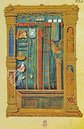 Far from the typical bucolic scenes, the images of the calendar present daily life throughout the months of the year. They do this by tracing the childhood, youth, and maturity of two brothers, one a pious man and the other sinner. Their life cycle ends in December with the former’s soul ascending to Heaven and the latter descending to Hell. This book of hours dedicates 27 miniatures to Genesis (f. 16–42) and each one of them includes a caption – more than many contemporary Bibles. The image cycle of the Life of Christ is presented in 63 miniatures, the Life and Miracles of the Virgin Mary in 20 miniatures, and the Apocalypse in 12 miniatures. With 320 miniatures altogether, this is one of the most richly illuminated manuscripts ever created, made all the more significant because it is the product of one of the greatest ateliers in history: the Parisian workshop of Jean Poyer, which seamlessly blended the predominant artistic styles from Italy and the Netherlands.
