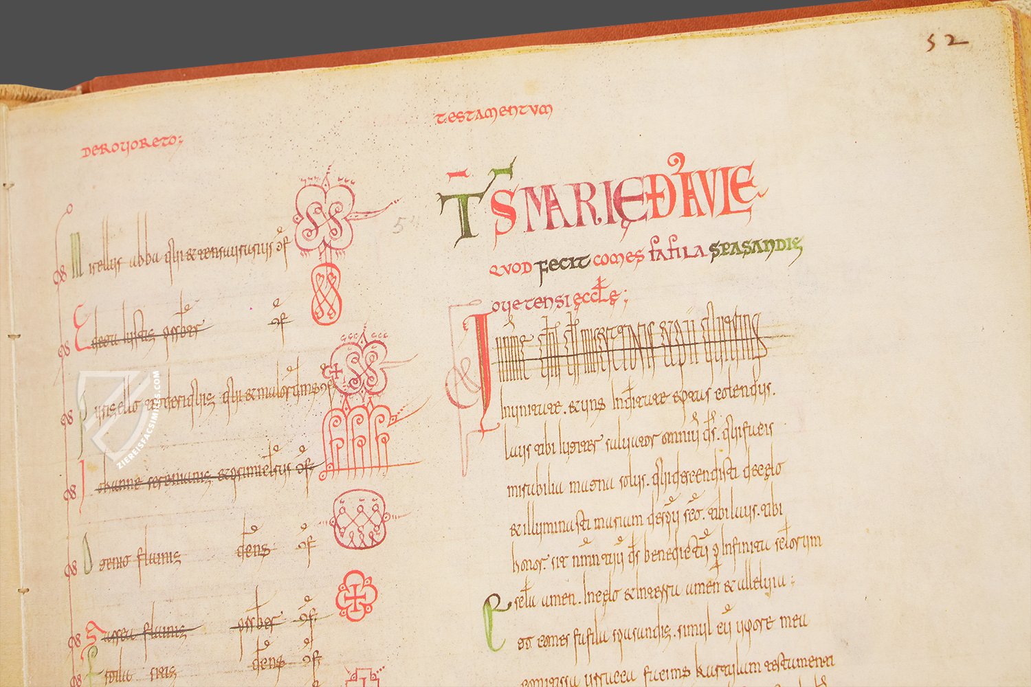 The Book of Testaments is compilation of legal and historical documents relating to the Cathedral of Oviedo that originated between 1109 and 1118. It was commissioned by Bishop Pelagius in the municipality of Oviedo, Spain and contains historically valuable information about medieval life in Spain. 17 full- and half-page miniatures including depictions of various kings modelled on Evangelist portraits as well as vignettes and historiated initials make the manuscript especially artistically appealing. They were created using expensive pigments as well as gold and silver β no expense was spared β and represent a stylistic fusion of Carolingian, Insular, and Iberian influences. As such, the Book of Testaments is simultaneously a precious historical resource as well as a splendid work of art.