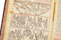 The work was structured into several parts. It begins with a theological section whose title can be translated as “Studies on God and the Creation of the World”. This section deals with the Holy Trinity, angels, demons, the signs of the zodiac, and the stars and planets that were known at the time. Thereupon follows a section with the title “Studies of Nature and Natural Law”, in which the correct modes for divine worship are discussed, the temptations of the world reviewed, and the sins that every good Christian should avoid at all costs are named. In the last section, “The Love of God”, the profession of faith is summarized and a few saint’s legends were outlined. Fabulous miniatures of various sizes, most of which exist as sketches, are sometimes furnished with bright colors and shimmering gold elements, illustrating the work and clarifying Ermengaud’s description.