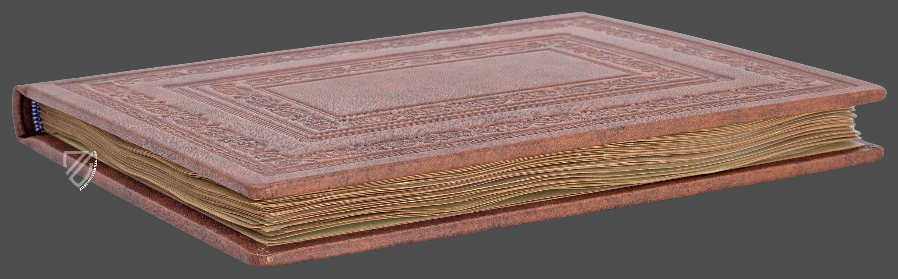 Only four Carolingian Apocalypse manuscripts survive worldwide. Probably originating from Cambrai in northern France at the end of the 9th century, this specimen stands out from the rest through its coloration and imagery. It is furnished with countless narrative devices, which can only be sought for in vain in the others. Temple and urban architecture contributes a certain liveliness to the pictures and pinpoints the locations of the events. Additionally, stylized depictions of plants emphasize their closeness to reality and the effort with which they were made. The intensity of the colors is noteworthy, which still appear forceful after 1,100 years and have forfeited nothing of their luminosity.