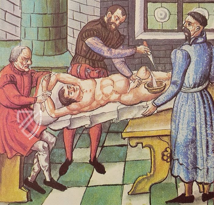 Caspar Stromayr was a surgeon and ophthalmologist who practiced in the city of Lindau on Lake Constance and whose groundbreaking surgical textbook from 1559 left a lasting impression on early modern medicine. His progressive textbook primarily addressed hernia surgery and related procedures but also includes a section with one of the earliest ophthalmological works written in the German language. This section addresses ailments such as cataracts and recommends treatments while vigorously criticizing the incompetence and charlatanism of his contemporary ophthalmologists. The paper manuscript is illustrated by artful yet accurate miniatures created with a wonderfully rich color palette, making it one of the earliest and most splendidly adorned work of its type. It remained unbound after the death of Stromayr and was acquired by the city of Lindau in 1577, at which point it was finally bound, but in the wrong order with some texts interlocked. After falling into oblivion for centuries, the work was rediscovered in 1909 and was republished in 1925.