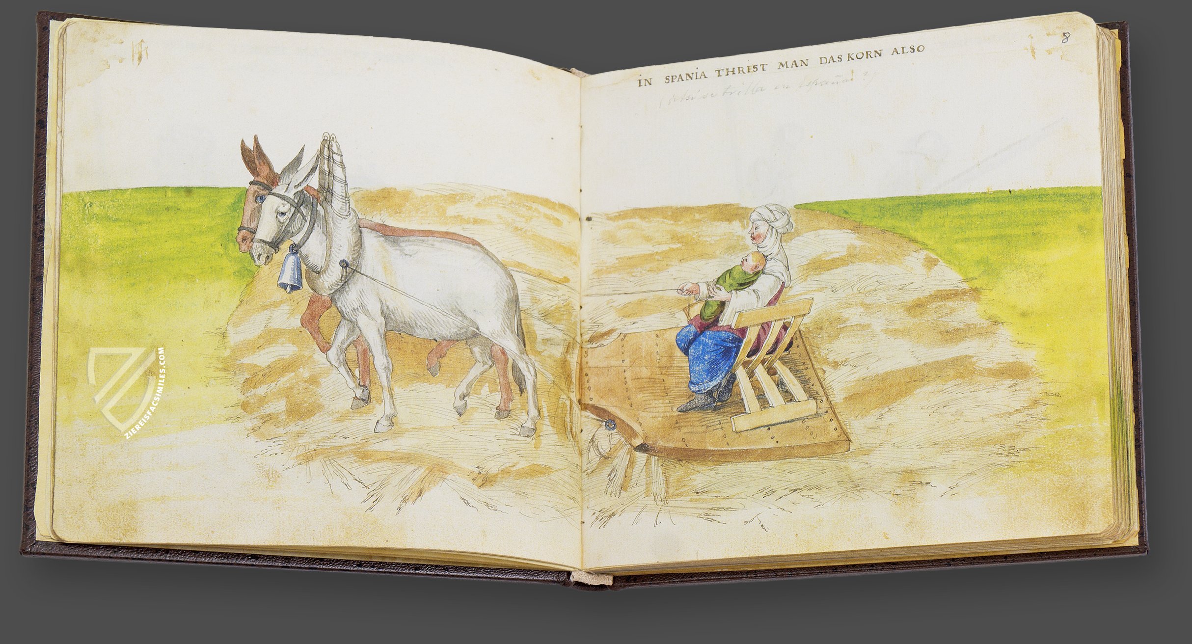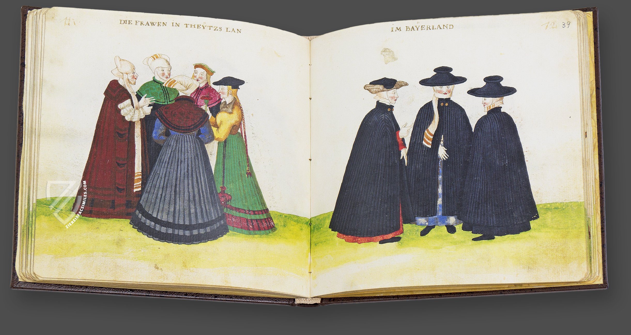 In 2010, the Spanish Ministry of Culture made an exciting and important acquisition: the Códice de Trajes or “Codex of Costumes”. It is a wonderfully illuminated witness to the reign of Holy Roman Emperor Charles V (1500–58), who ruled over the first empire over which the “sun never set”. It consists of 125 watercolors showing the style of dress in various regions around the world both in and near the massive Hapsburg Empire in Europe or the Spanish Empire in Africa and the New World, which were united under Charles V, who came closer than anyone since the Emperor Charlemagne to achieve the medieval concept of a universal monarchy uniting all of Christendom, the so-called res publica Christiana. Furnished with captions in German, the splendid manuscript from ca. 1546–7 is of inestimable value as a reference work concerning the customs and fashions of the period. Instead of parchment, the manuscript was creating using paper which, according to the watermark, was created in Augsburg in 1546.