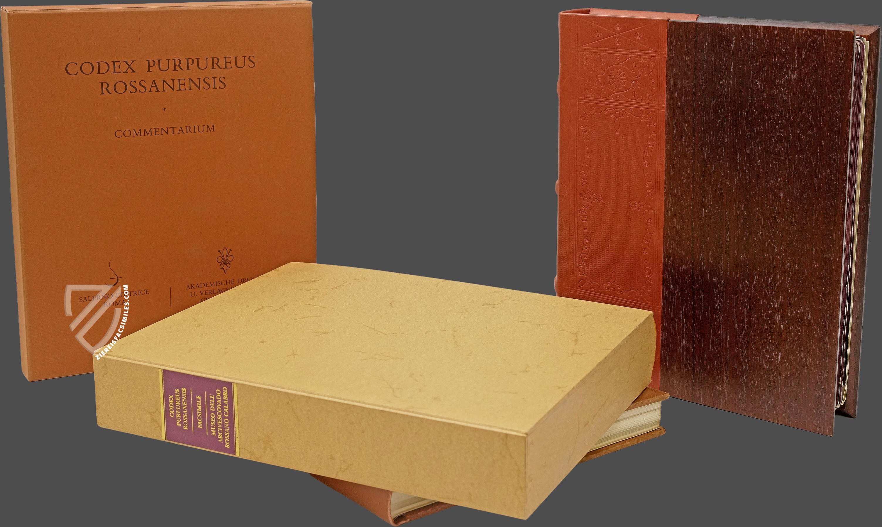 The Codex Purpureus Rossanensis or Rossano Gospels, created nearly 1500 years ago, is arguably one of the most valuable and fascinating manuscripts in the world for a variety of reasons, the most astounding of which is that it is one of three of the oldest purple illustrated manuscripts in the world. It enraptures the viewer with 15 pages of perfectly designed miniatures which constitute an invaluable and irreplaceable testimony to Byzantine art during the 6th century. Its appearance expresses a purely regal air and the well-known purple dyed parchment sheets found within have made this manuscript famous worldwide. The Greek text stretches over 386 pages and is written in silver and golden majuscules throughout. Unfortunately the manuscript is today incomplete, as half of its original 800 pages have been lost over the ages. The current version encompasses the complete Gospel of Saint Matthew and almost the entire Gospel of Saint Mark.