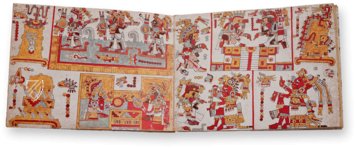 As late as 1519, the same year that HernΓ‘n CortΓ©s had begun his conquest of Mexico, he sent the Spanish King and Emperor Charles V (1500-1558) two books of the "Yndios," as he wrote, to give his sovereign an insight into the New World. It stands to reason that one of these books was the Codex Zouche-Nuttall, which the conqueror of Mexico considered representative of this type of book, which was unfamiliar in Europe. If it did indeed reach Europe so early, it is a special favor of tradition that this Codex of the Mixtecs is now preserved in the British Museum and is available in a beguiling facsimile edition. The 11-meter-long leporello of deer parchment contains extensive depictions of rituals, but above all historical representations, which include expansive geographical depictions. Their size is characteristic of the codex, making it an exciting source for the history, art, and religion of ancient America in general and the Mixtecs in particular.