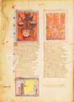 This content is spread over four columns of text on each double page, so that each antitype (left) can be shown in the main section with its corresponding Old Testament types. Each text column begins with a column-wide miniature depicting the respective biblical event in bold colors and wide frames, with red and blue shades dominating the color palette. At the beginning and end of the manuscript there are also several Genesis miniatures and further images of the life of Christ and from the life of Mary, corresponding to the texts.