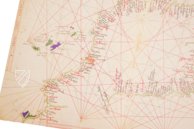 However, the high-quality nautical charts would have been perfectly practicable for this purpose. They show the coastlines and islands of the Black Sea, the Mediterranean (divided into five maps) and the European Atlantic coast including large parts of Great Britain. The delicate illustrations highlight important harbors in red, while small islands appear in green and blue.