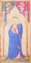 The maps are not only enclosed by their wooden binding. The first and last double page of the codex show splendid miniatures, each with two figures in smoothly draped robes and in charming colors. The Annunciation to Mary prefaces the work: teh Virgin is wearing a gold-lined blue cloak and is facing the Archangel Gabriel, who is about to announce the miraculous message to her. At the end of the codex, on the other hand, two individual saints are depicted: the Evangelist Mark and Paul with a book and sword. They are attributed to the so-called Maestro della Parousia, who was active in 15th century Italy and created a worthy framework for this remarkable atlas with his graceful figures.