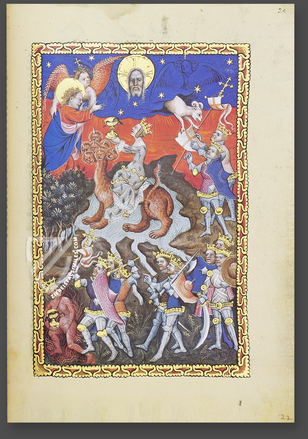 The Book of Revelation is the last book of the Bible and is also known as the Apocalypse. In this biblical story the visions of John about Judgement Day and the end of the world are thematized, describing how sinners will be punished in Hell and righteous people will be rewarded in Heaven. The artistically valuable depictions of the Flemish Apocalypse are counted among the greatest eschatological pictorial visions of the Late Middle Ages.