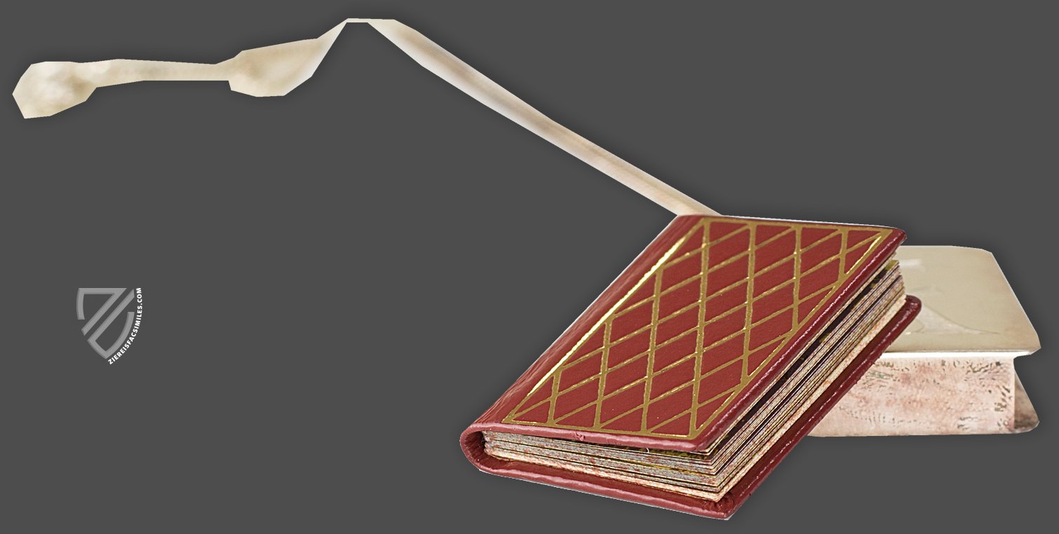 The missals of St. Francis of Assisi and St. Anna are contained in a small codex measuring only 4 cm x 3 cm. Created during the 16th century by an unknown artist β probably a humble yet talented member of the Franciscan Order β this small 30-page treasure contains exciting miniatures and other precious ornamental elements on every page. The truly tiny miniatures are nevertheless highly detailed, and the text is precisely and legibly written in gold ink. Small codices like this were designed to be carried on oneβs person and this one comes in a silver case on a chain that can be worn as a necklace. This small but incredibly fine private devotional book is a glimpse of the last and most spectacular epoch of the art of handwritten and illuminated manuscripts.