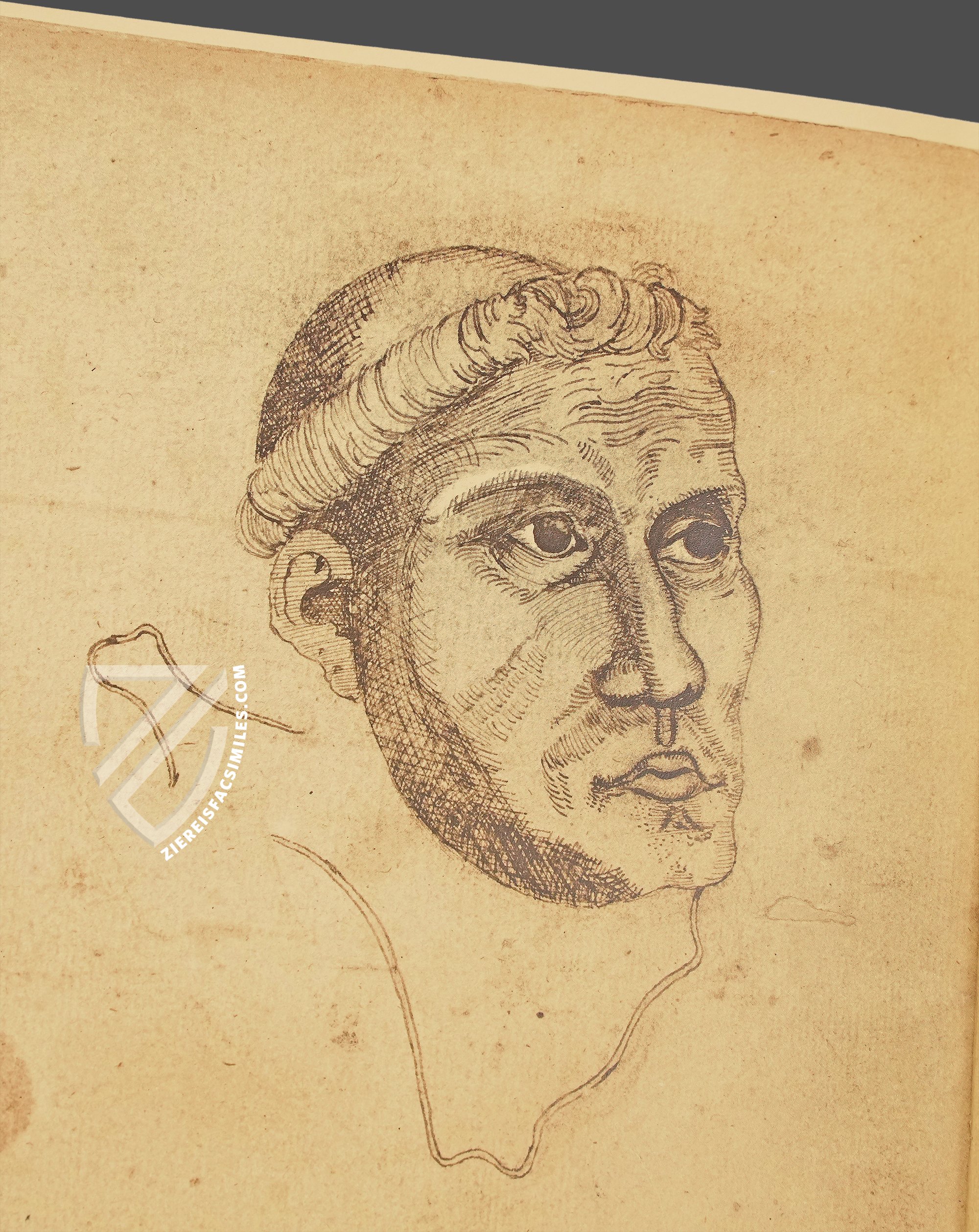 A later owner added a copy of Lucas Cranach the Elder's (c. 1472–1553) woodcut depicting Luther as an Augustinian monk to fol. 1r of the psalter. The original work was created by the German Renaissance master between 1520 and 1524. It was slightly cropped for the psalter and is one of eleven surviving portraits he made of the reformer.