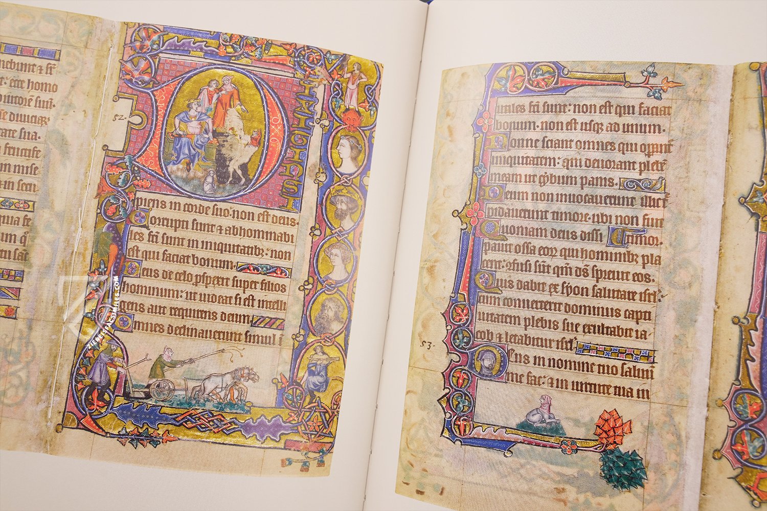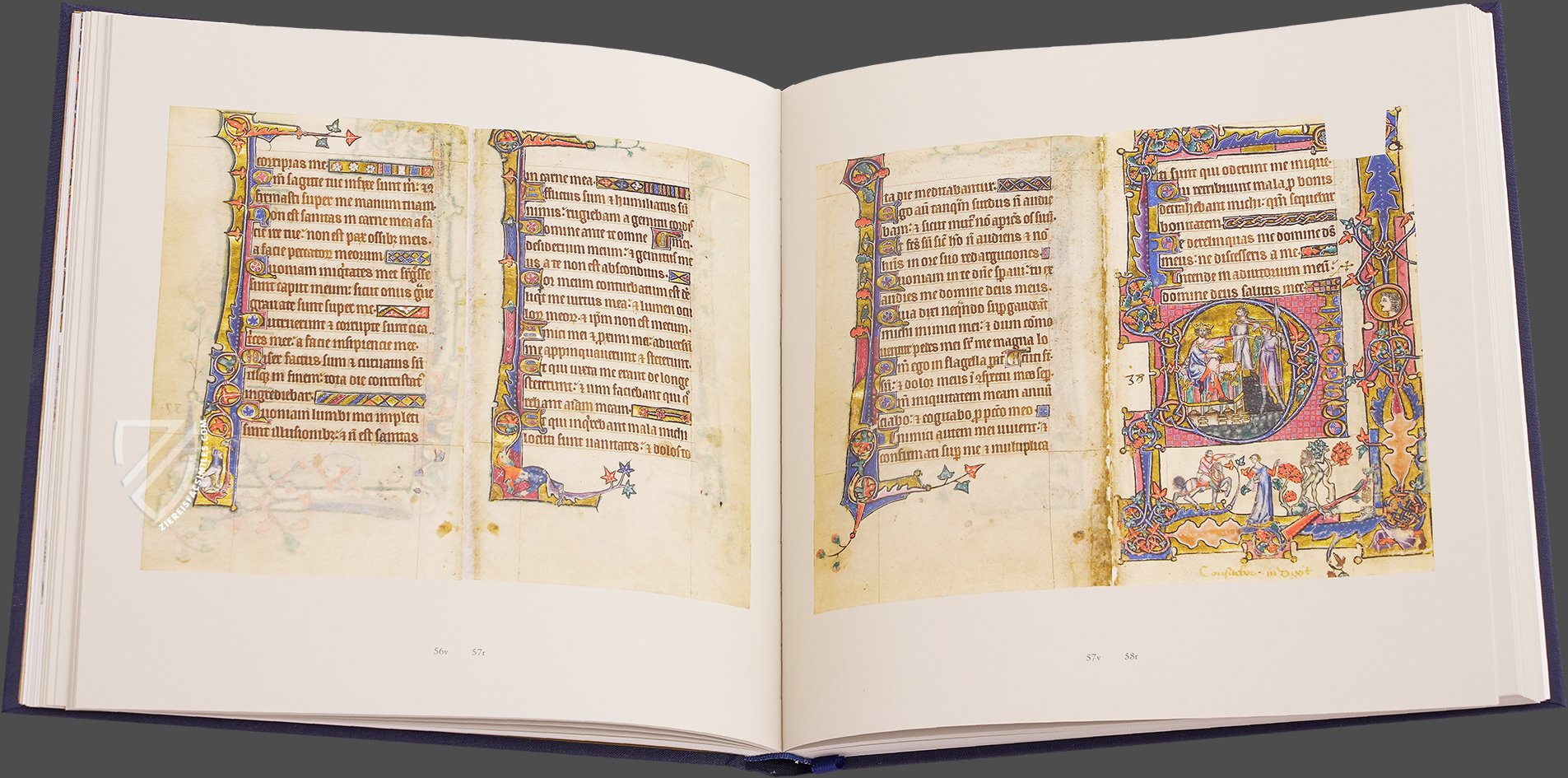 All 504 pages of this small masterpiece of English Gothic illumination are richly adorned by masterful miniatures and historiated initials with shimmering gold or patterned backgrounds, strange and fascinating drolleries and animals in the margins, and vegetal borders with interlaced tendrils. Originating ca. 1330β40 in East Anglia, probably Norwich, this splendid Psalter was only recently rediscovered after centuries of neglect as just another codex in the library of Shirburn Castle, former seat of the Earls of Macclesfield. The image program was designed with the greatest care by the unknown artists responsible for it, making it a particularly refined example of the already impressive English Psalters produced during this period.