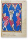 Between 1285 and 1290, an incredibly expressive illuminated manuscript was created in Anglo-Norman Westminster, commissioned by a noblewoman from northern France: Mary of Rethel (1231–1315). Executed in bold colors and luminous gold, the so-called Madame Marie's Picture Book contains 87 full-page miniatures depicting, under delicate ogival arches, the agonies of famous saints and martyrs as well as the moving vita of Christ in a manner that is as unsparing as it is artful. Short captions are, besides the calendar with saints' feast days, the only existing texts in this unique manuscript, which presents the martyrdoms to the user purely visually. The ornate gem came into the possession of the Dukes of Burgundy in the early 15th century and is first mentioned in the inventory of Philip the Bold. Later it was part of the libraries of John the Fearless and Philip the Good and is now kept in the Bibliothèque nationale de France.