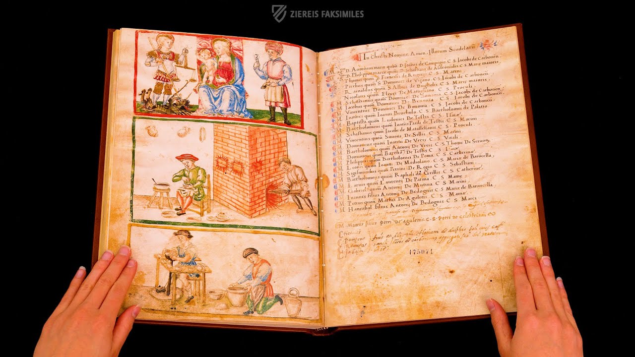 From pots and everyday tools to chain mail and swords: the Matricula Societatis Fabrorum Civitatis Bononiae is undoubtedly one of the most important textual and pictorial sources on late medieval blacksmithing and its urban organization. Begun in 1366, the 60-page manuscript contains the rules and regulations of the smiths' guild of the city of Bologna. It lists all the blacksmith's crafts and sets out the regulations that applied to them, ranging from the procurement of raw materials to inner-city logistics and trade. Almost every page begins with a corresponding miniature. Today, the images provide researchers with invaluable information about how each craft was carried out, which techniques were used, and the type of premises in which the work took place. In addition, a large miniature allows conclusions to be drawn about the location of the smiths within the urban structure of 14th-century Bologna. Furthermore, the images offer fascinating insights into late medieval everyday life and contemporary fashion. A real treasure of Trecento book illumination!