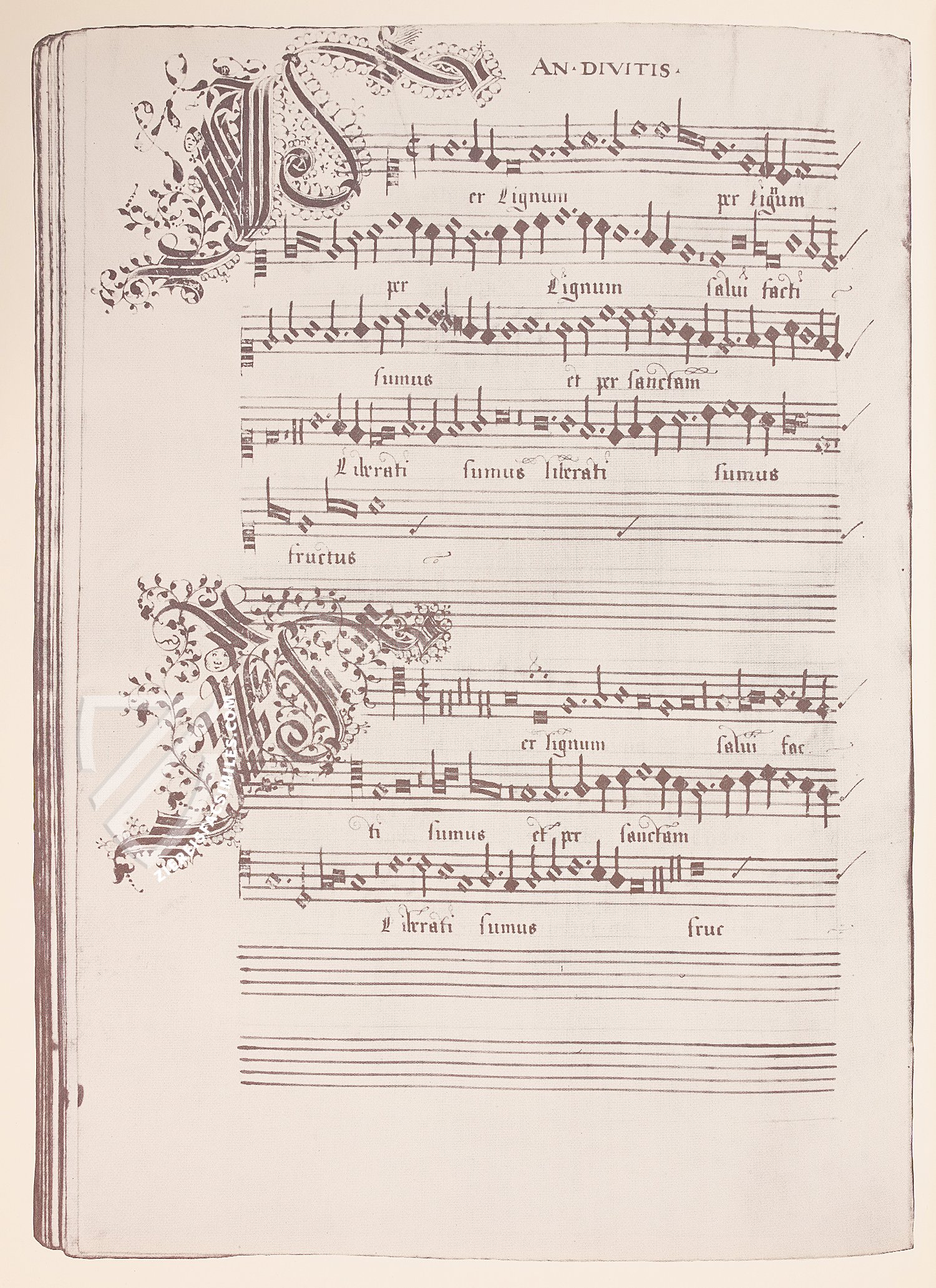 The Medici Codex of 1518 is one of the most significant music books of the European 16th century. It contains 53 motets by a total of 21 leading Renaissance composers from France, Flanders, Portugal and Italy. The manuscript is the only surviving evidence of the work of the Portuguese composer Andreas de Silva (fl. 1520) and features, among other pieces, the famous Déporation de Ockeghem - a heartfelt lament on the death of the Franco-Flemish composer Johannes Ockeghem (ca. 1410-1497). The French court composer Jean Mouton (ca. 1459-1522), ten of whose motets can also be found in the Medici Codex, may have been responsible for the compilation of the work. Its patron was the Medici Pope Leo X (1475-1521), who gave the valuable manuscript to his nephew Lorenzo di Piero de' Medici (1492-1519) and his bride Madeleine de La Tour d'Auvergne (1498-1519) for their wedding. After the marriage took place on 2 May 1528 in Amboise in France, the gift was presented on the couple's triumphant arrival in Florence. The illumination of the codex is appropriately splendid, with its pages adorned all over with beautiful decorated initials.