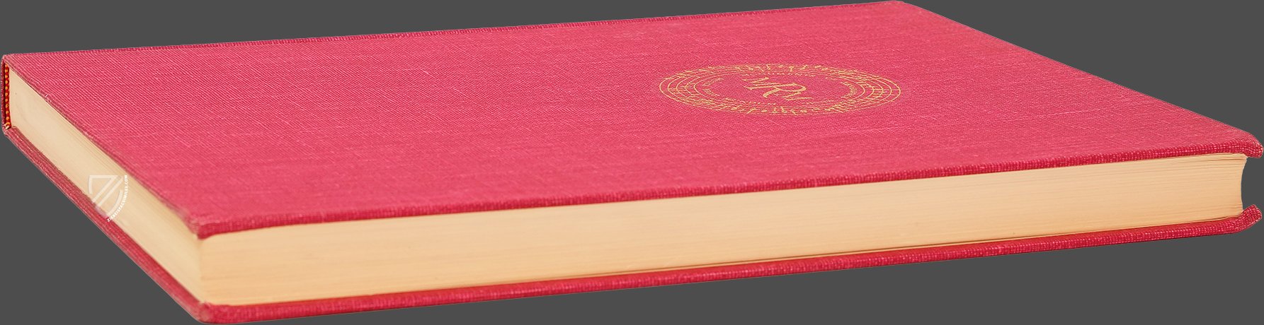 All three coats of arms belong to Leo X, the Medici pope who commissioned the manuscript. Each of the three emblems features the six red roundels typical of the family crest. In addition, the banner in the filigree-ornamented initial above presents the Medici motto: “SEMPER” – meaning “always.”