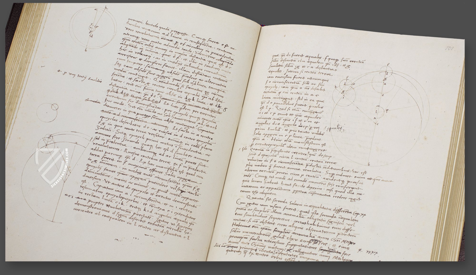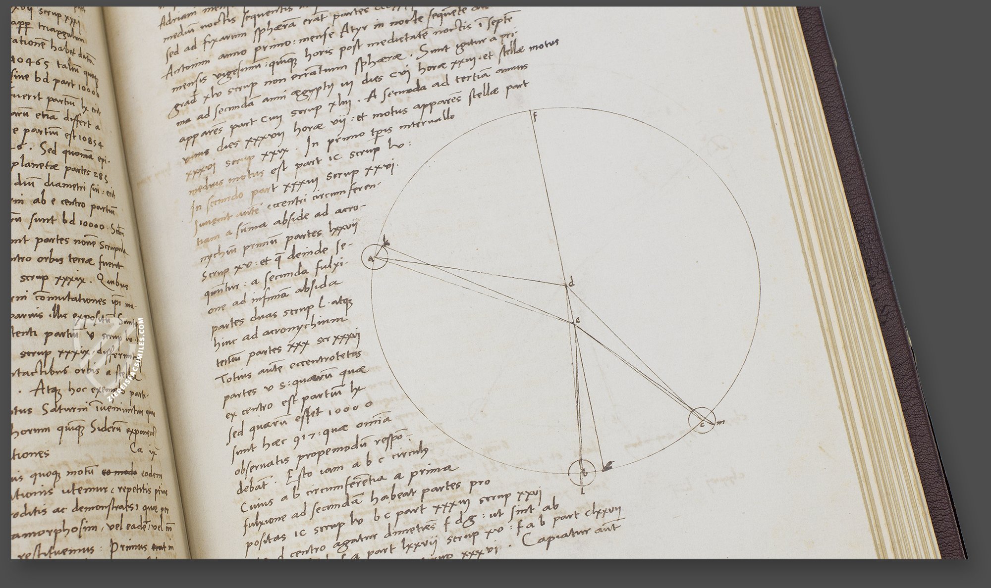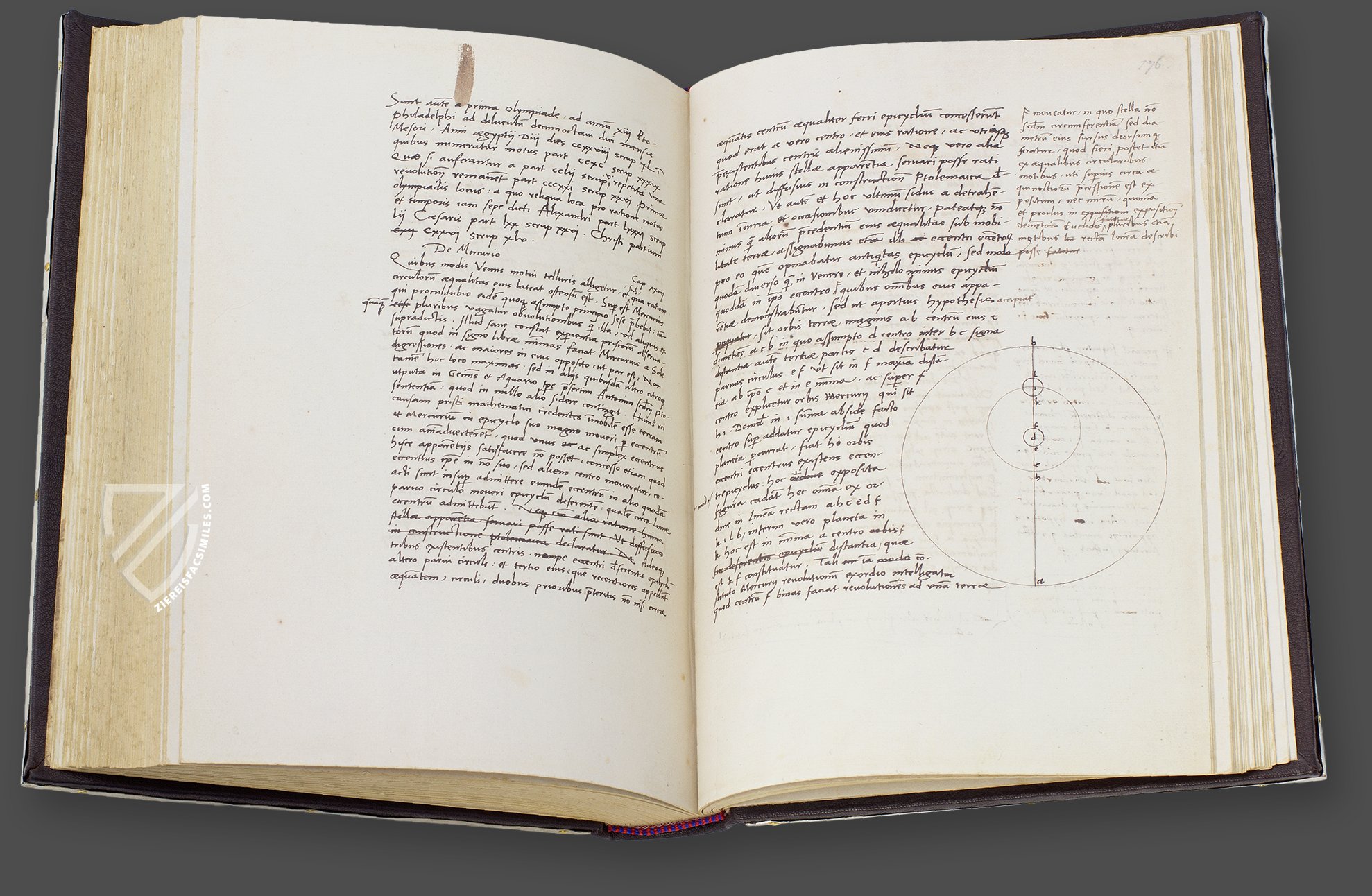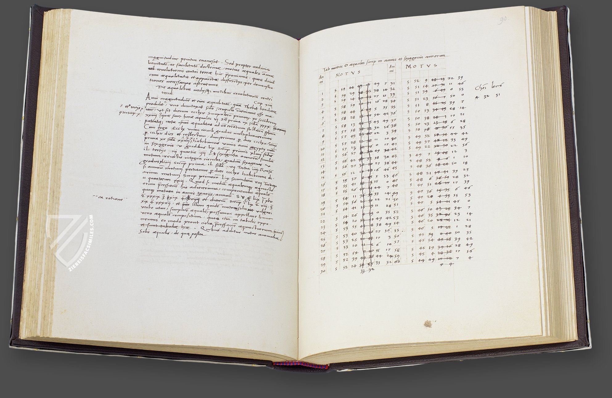 The original manuscript consists of 21 notebooks, so-called signatures, consisting of 8-12 pages each, which are written in neat columns by Copernicus himself. His handwriting varies between a rushed, but shapely italic and an easier, more vertical style. This indicates that the genius was sometimes in a rush to capture the thoughts in his head, while at other times was able to leisurely explore and articulate his ideas. Copernicus filled the margins with 162 geometric figures carefully drawn by hand with a pen, compass, and ruler as well as tables created with a mix of black and red ink.