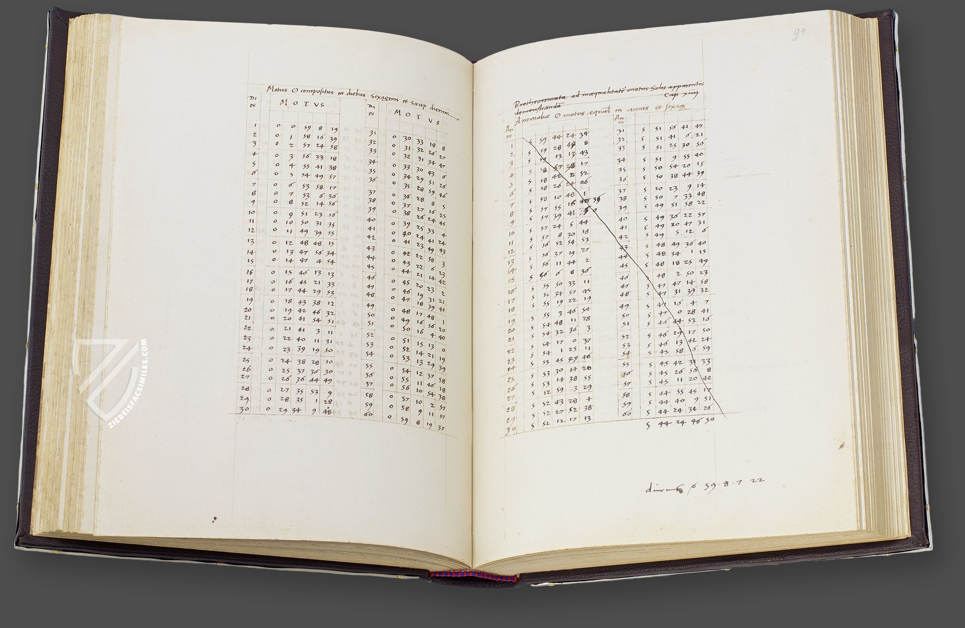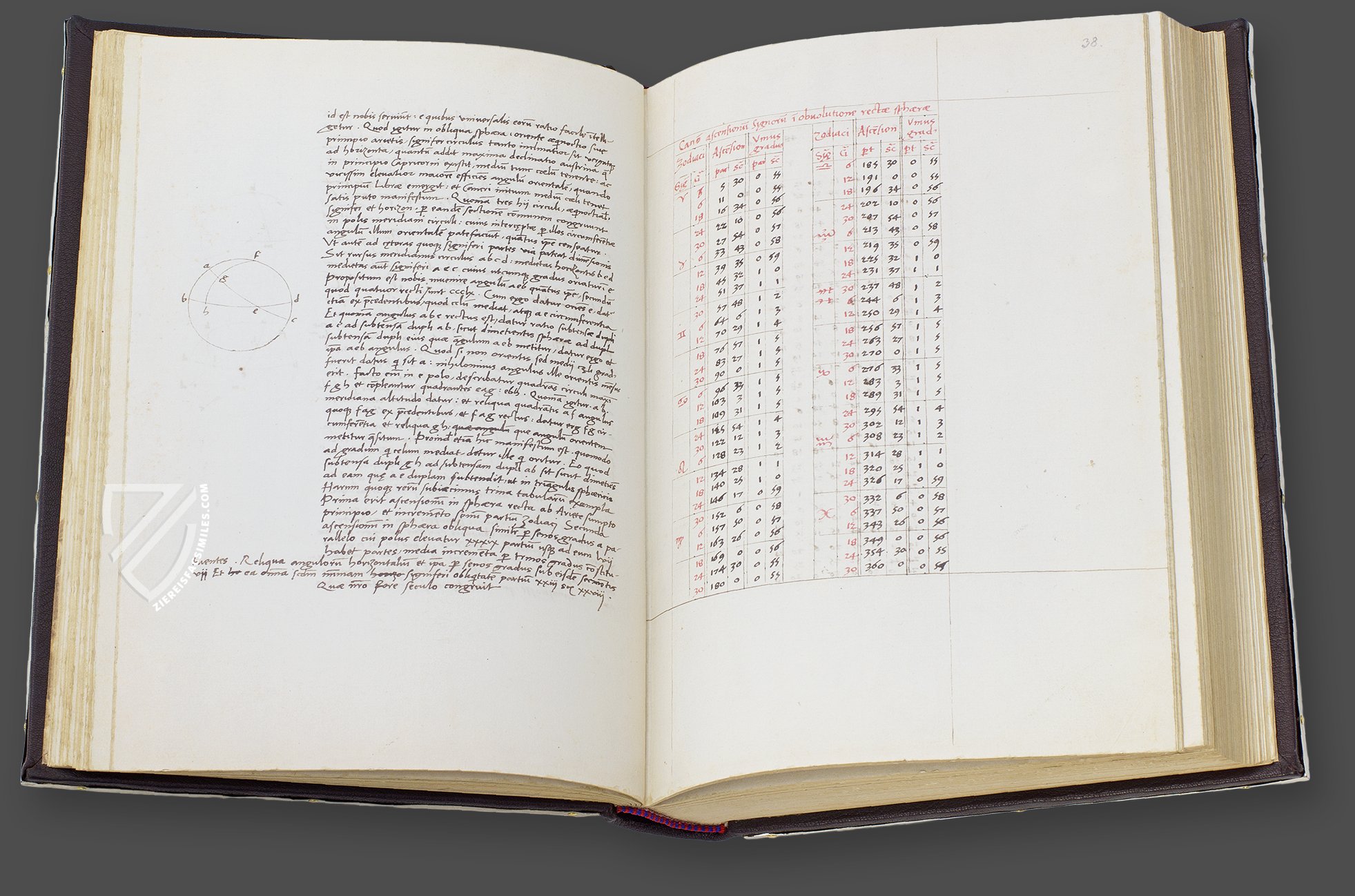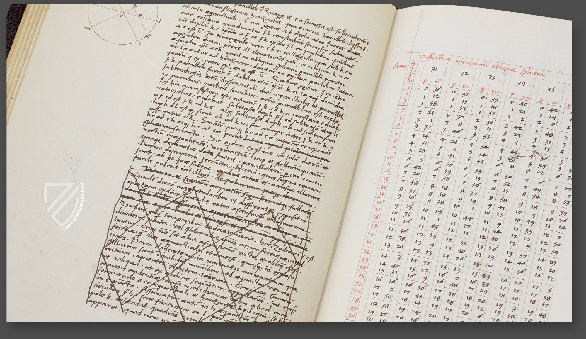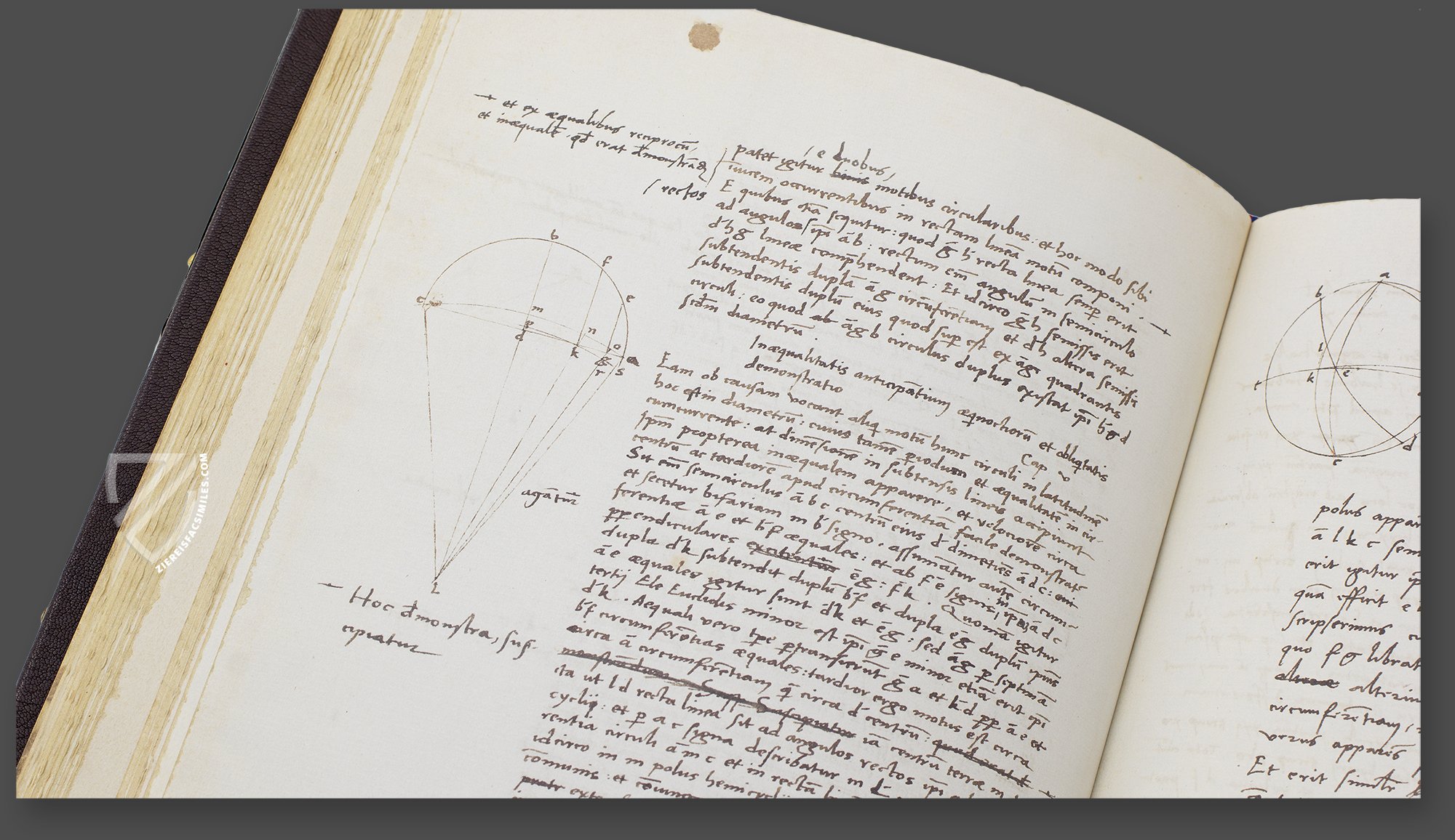 The original manuscript consists of 21 notebooks, so-called signatures, consisting of 8-12 pages each, which are written in neat columns by Copernicus himself. His handwriting varies between a rushed, but shapely italic and an easier, more vertical style. This indicates that the genius was sometimes in a rush to capture the thoughts in his head, while at other times was able to leisurely explore and articulate his ideas. Copernicus filled the margins with 162 geometric figures carefully drawn by hand with a pen, compass, and ruler as well as tables created with a mix of black and red ink.