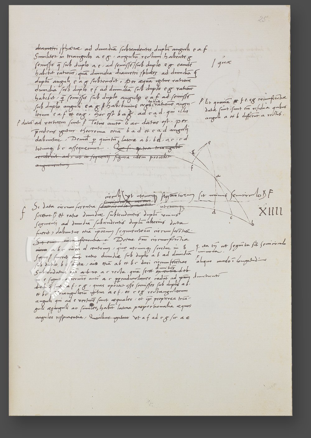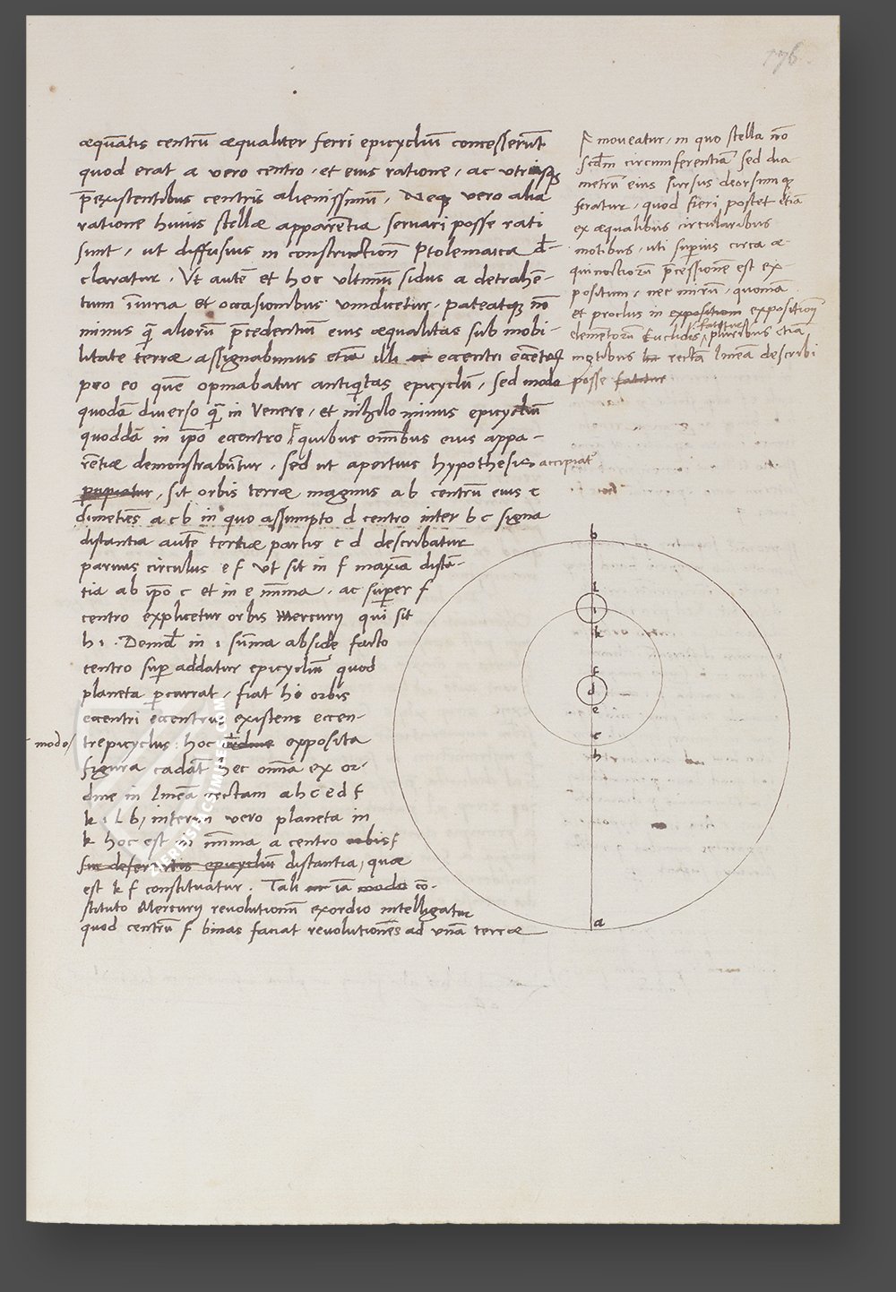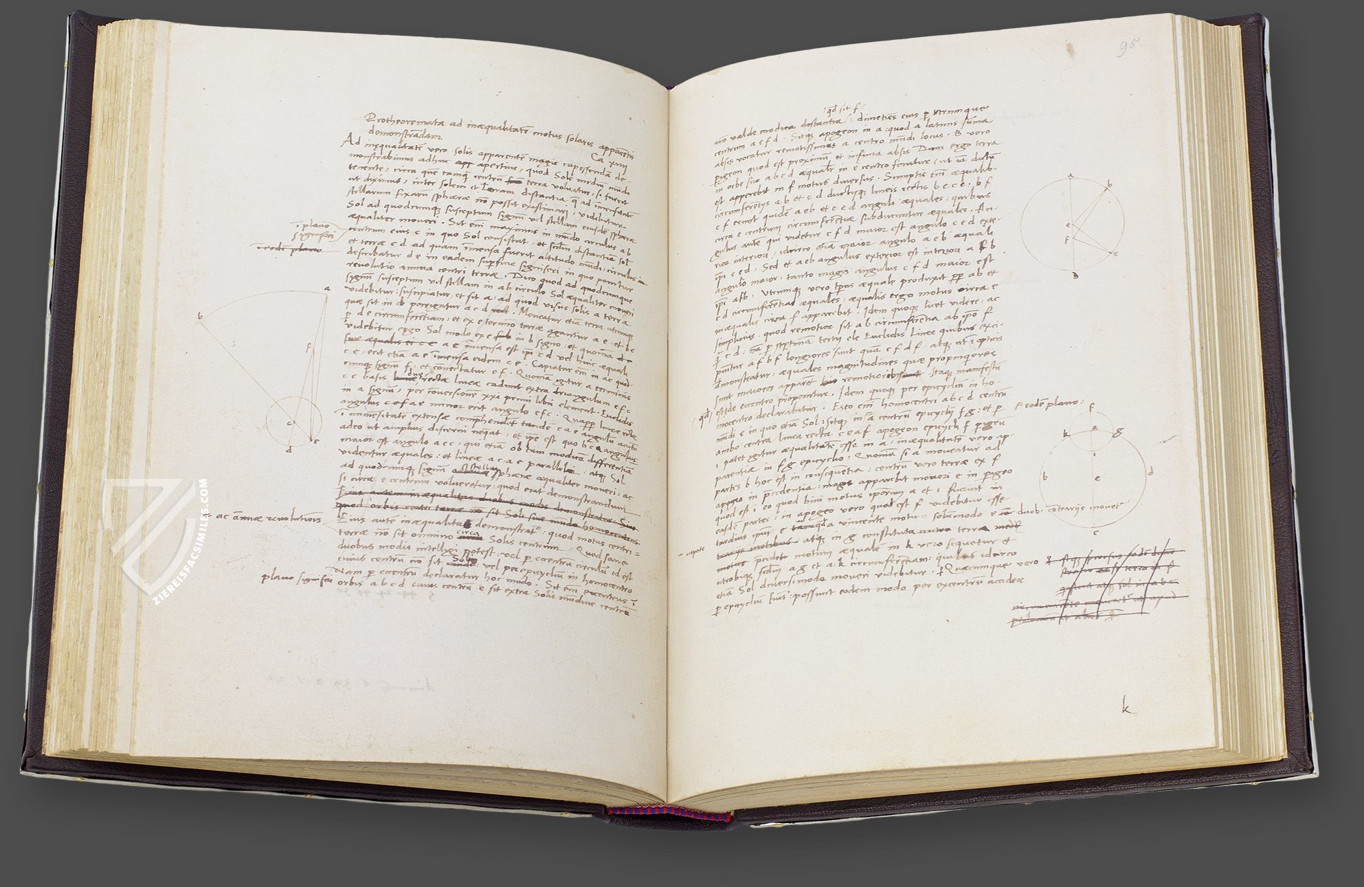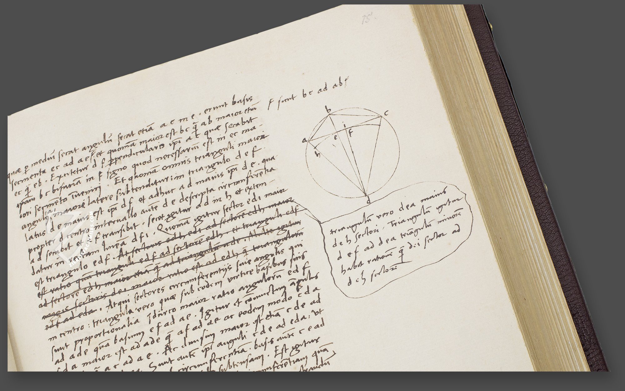 The original manuscript consists of 21 notebooks, so-called signatures, consisting of 8-12 pages each, which are written in neat columns by Copernicus himself. His handwriting varies between a rushed, but shapely italic and an easier, more vertical style. This indicates that the genius was sometimes in a rush to capture the thoughts in his head, while at other times was able to leisurely explore and articulate his ideas. Copernicus filled the margins with 162 geometric figures carefully drawn by hand with a pen, compass, and ruler as well as tables created with a mix of black and red ink.