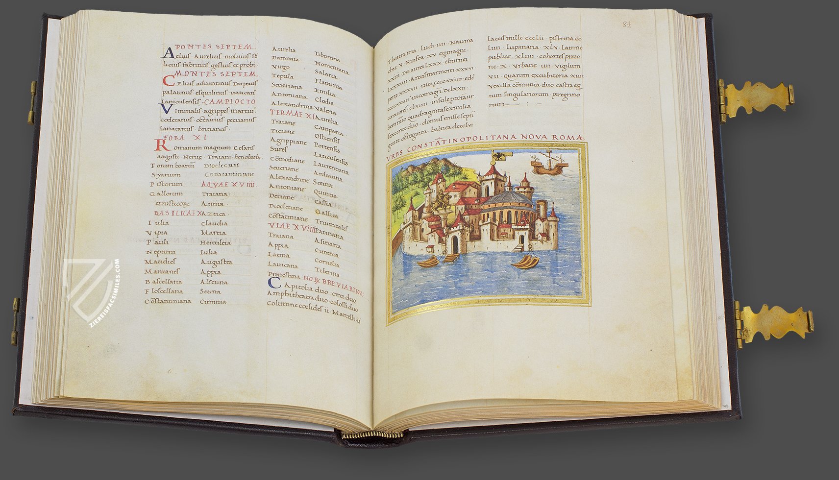 The most famous of the twelve treatises in the manuscript is undoubtedly the so-called Notitia Dignitatum (Notitia dignitatum tam civilium quam militarium): a Roman state ledger, originating from the beginning of the 5th century. It contains a description of the administrative structure of the Roman Empire along with a depiction of the personalities and office holders who were responsible for managing Roman sovereignty. This valuable information about the management structure of the Roman Empire, about the military and political mastery of such a large area, was continuously referred to over the centuries. Thus, Charlemagne himself relied upon the Notitia Dignitatum and formed the organization of his empire according to its rules.