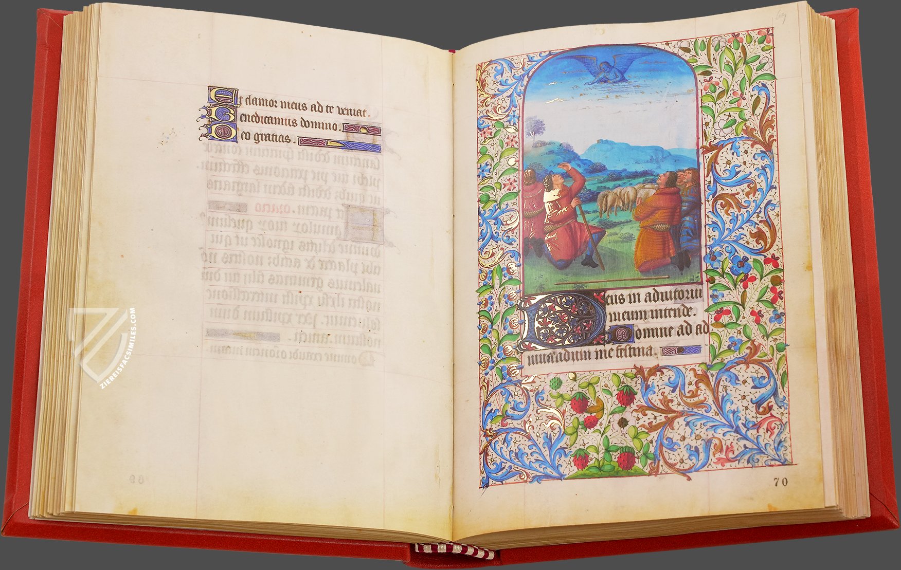 This miniature is exemplary of the grandiose visual dΓ©cor of the Officium Beatae Mariae Virginis of Maria Antonietta of Savoy: 13 full-page miniatures, 13 historiated initials, and 172 decorative initials in red and blue inks also adorn the lavishly decorated manuscript. Alongside this miniature of the Annunciation, the gorgeous, haunting depiction of the Lamentation also makes the artistic influences from Flanders apparent. Although originating from Italy in the second half of the 15th century, the paintings are reminiscent of the Flemish school of Willem Vrelant.