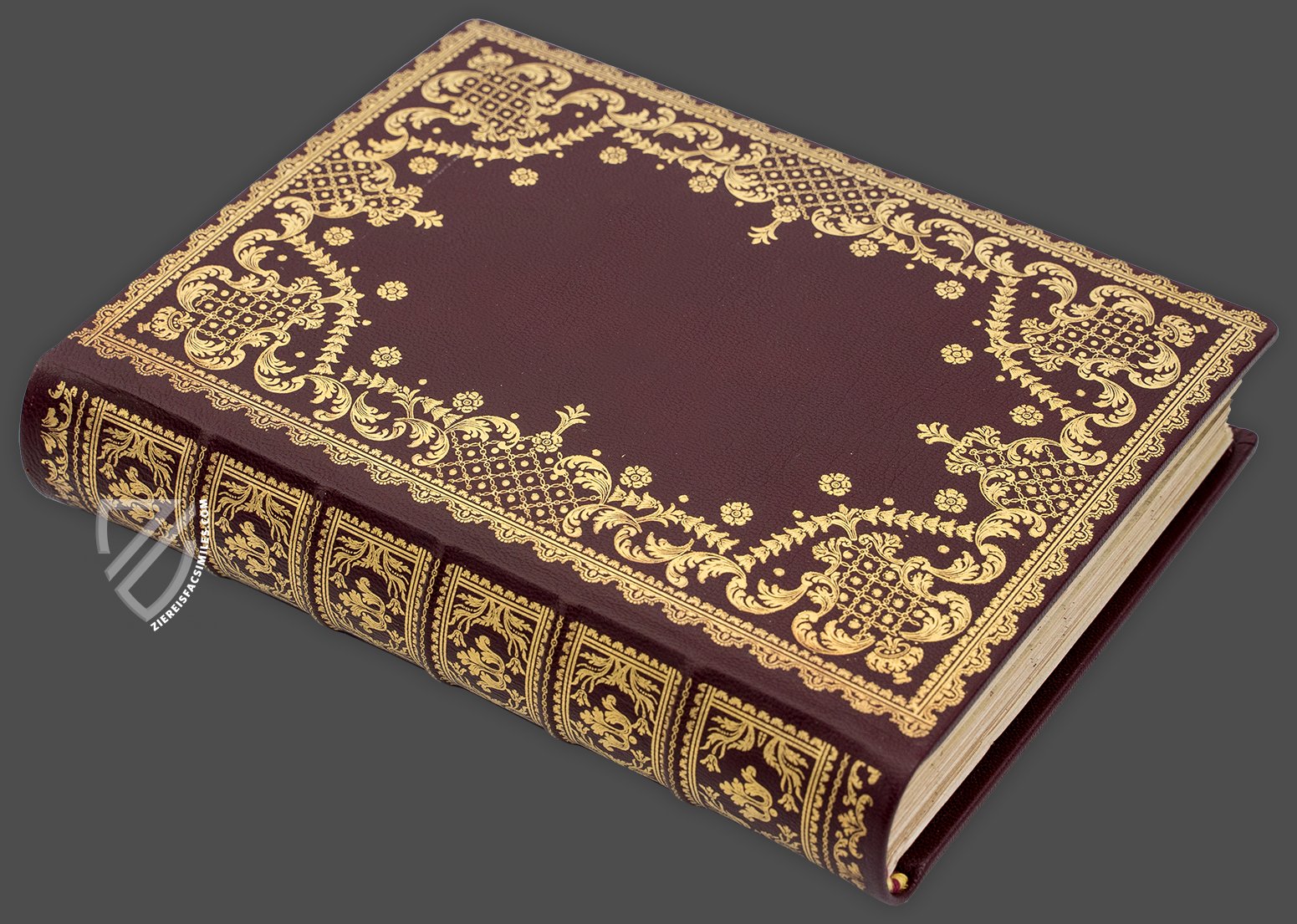 Although the patron and workshop responsible for this splendid private devotional book remains anonymous, the quality of the manuscript indicates that they must have been someone of wealth and sophistication. Manuscript art was reaching its zenith in the late 15th century, just as book printing was spreading across Europe, and this mysterious codex represents a fine specimen of this transitional period. In fact, a detailed analysis of the manuscript indicates that it actually consists of at least two other works which were united into a single codex. The Psalms and Hymns sections are different in design, spelling, and numeration. The psalter section has a note in the colophon dating it to 1476, while three more dates are found throughout the rest of the manuscript ending with the year 1480. Thus, the component parts had to be worked still further in order to homogenize them aesthetically, which was apparently undertaken by several scribes over a few years. Various stylistic indicators in the work point to Bohemia as the region in which the work originated. Nonetheless, they succeeded in creating a splendid manuscript that is apparently modelled on the décor and miniatures of the famous masterpiece known as the Très Riches Heures du Duc de Berry. Preserved today in a splendid 18th century red leather binding with gold impressions, manuscript thus stands shoulder to shoulder with the great manuscripts from the court school in Prague.