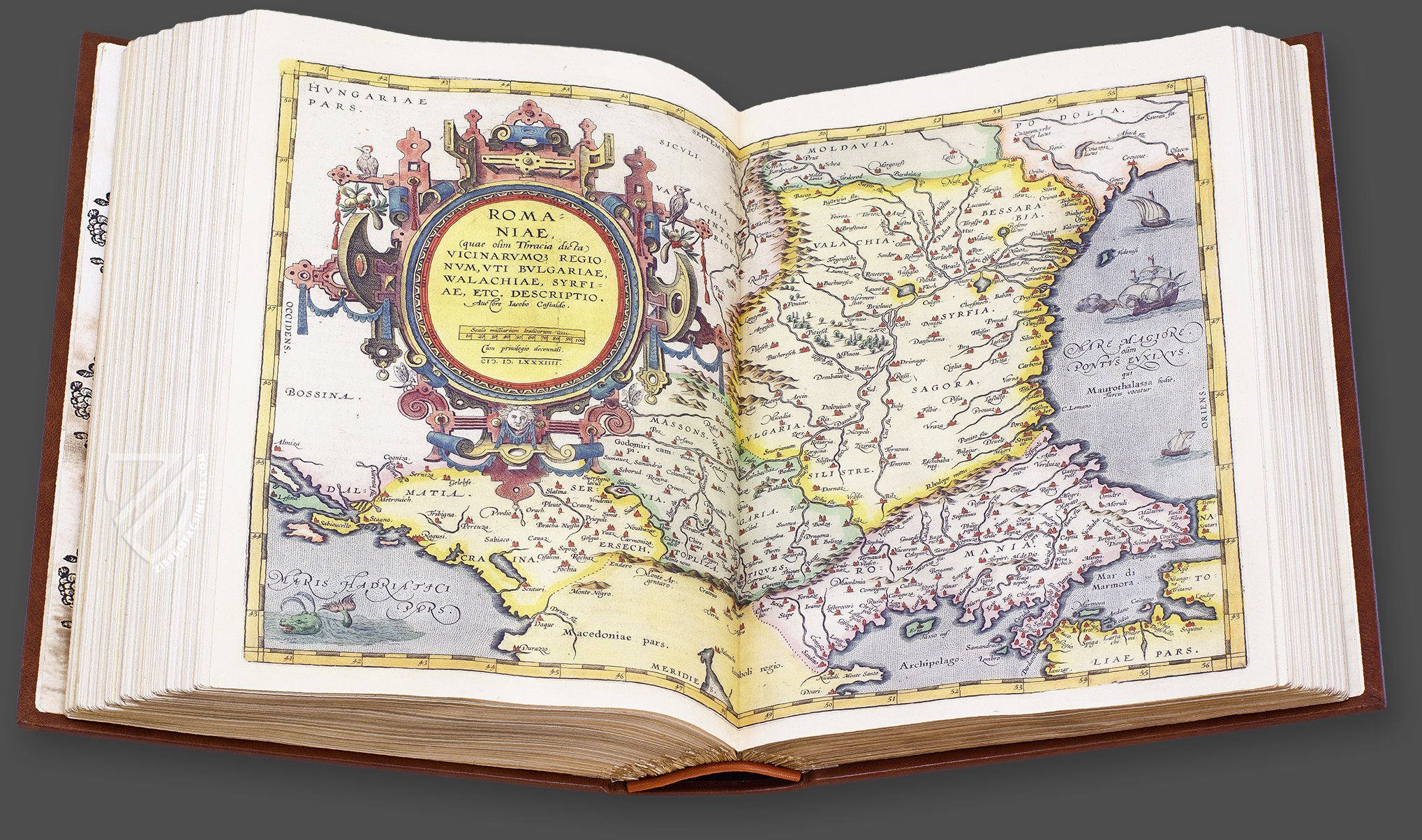 The Atlas by Abraham Ortelius is a work which united all of the cartographical findings of the 16th century. It is considered to be first modern and first commercially successful atlas of the world. The Baroque style illuminated manuscript contains 167 gorgeously colored and geographically correct maps of the then-known regions of the world. Alongside maps and cartographical information, the precious work is adorned with delightful representations of landscapes and architecture.