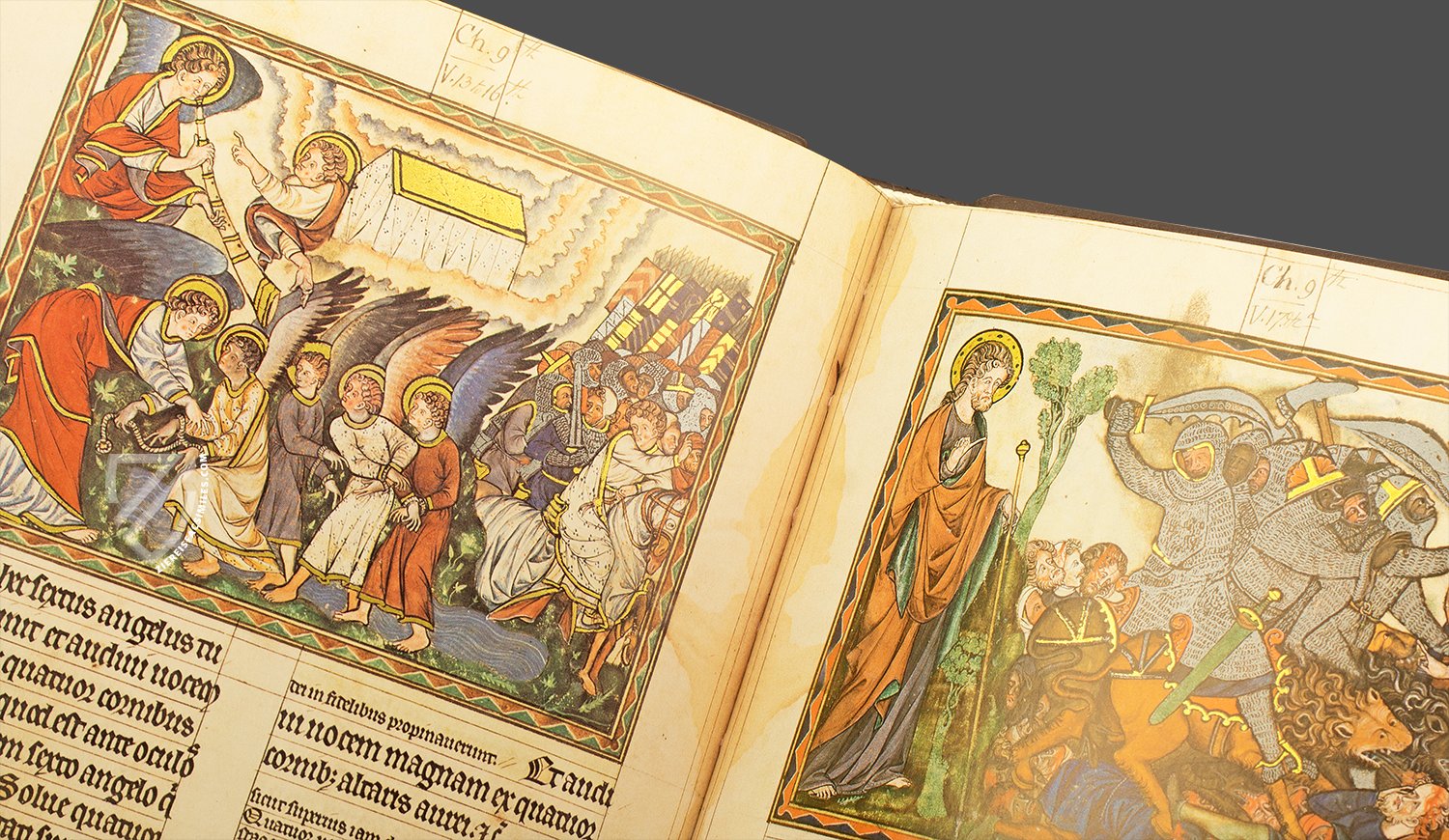 The English King Edward I and his spouse Eleanor of Castilia-LeΓ³n had commissioned this Apocalypse before their ascent to the throne in 1272, probably from the court school of Westminster. Little, however, is known about the manuscriptβs later destiny. What we do know is that it belonged to Francis Douce before it passed to the Bodleian Library in Oxford. In the year 1834, Douce left it to said library where it is kept to this day. The deluxe full leather binding in which the manuscript is currently bound was produced around 1600 by an Oxfordian artist. The binding of the facsimile edition constitutes a faithful replica of this last original binding. The scholarly commentary with its 171 figures on 284 pages expertly guides the reader through the manuscript. Todayβs public now has access to the Apocalypse thanks to this perfectly executed facsimile edition of the 13th century manuscript.