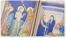 Pacino di Bonaguida's (fl. ca. 1303-1347) Picture Book is counted among the most significant works of Italian Trecento book art. The Florentine artist transferred the developments of Trecento painting in Italy, represented in particular by the monumental painting of Giotto, to the more intimate medium of book illumination. In brightly coloured, gold-decorated miniatures of great intensity, he impressively visualises the life of Christ and Saint Gerardo da Villamagna in his illuminated manuscript from around 1320. The biblical scenes mostly unfold against bright blue backgrounds, which decisively determine the aesthetics of the work. Particularly noteworthy is the extent to which architecture is depicted using perspective, which was utilised here for the first time in book illumination. This picture cycle is undoubtedly one of the most beautiful depictions of the Vita Christi and still captivates viewers today.