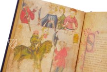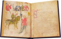 The only source for four extremely charming Arthurian legends to survive to the present originated in southern England during the second half of the 14th century. The poems Pearl, Cleanness, Patience, and Sir Gawain and the Green Knight all probably originated from one author and testify to the literary flowering of 14th century England with their creativity. The twelve full-page miniatures, which accompany each poem and impressively visualize them for the beholder, are also probably from the same hand. The decoration is complimented by a total of 48 initials in red and blue that visualize certain sections of the allegorical poems.