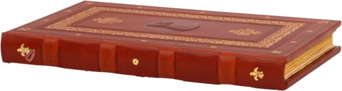 Del Chierico was employed by the Medici and Federico de Montefeltro inter alia, he also worked for famous patrons outside of Italy. He produced the decoration, consisting of six miniatures, wonderful frames, and decorative initials, probably with the help of Zanobi Strozzi. Bright flowers and exuberant ornamentation in true Renaissance style adorn the 120 pages of the manuscript, which are additionally furnished with precious gold, and thus presenting itself as a true luxury manuscript.