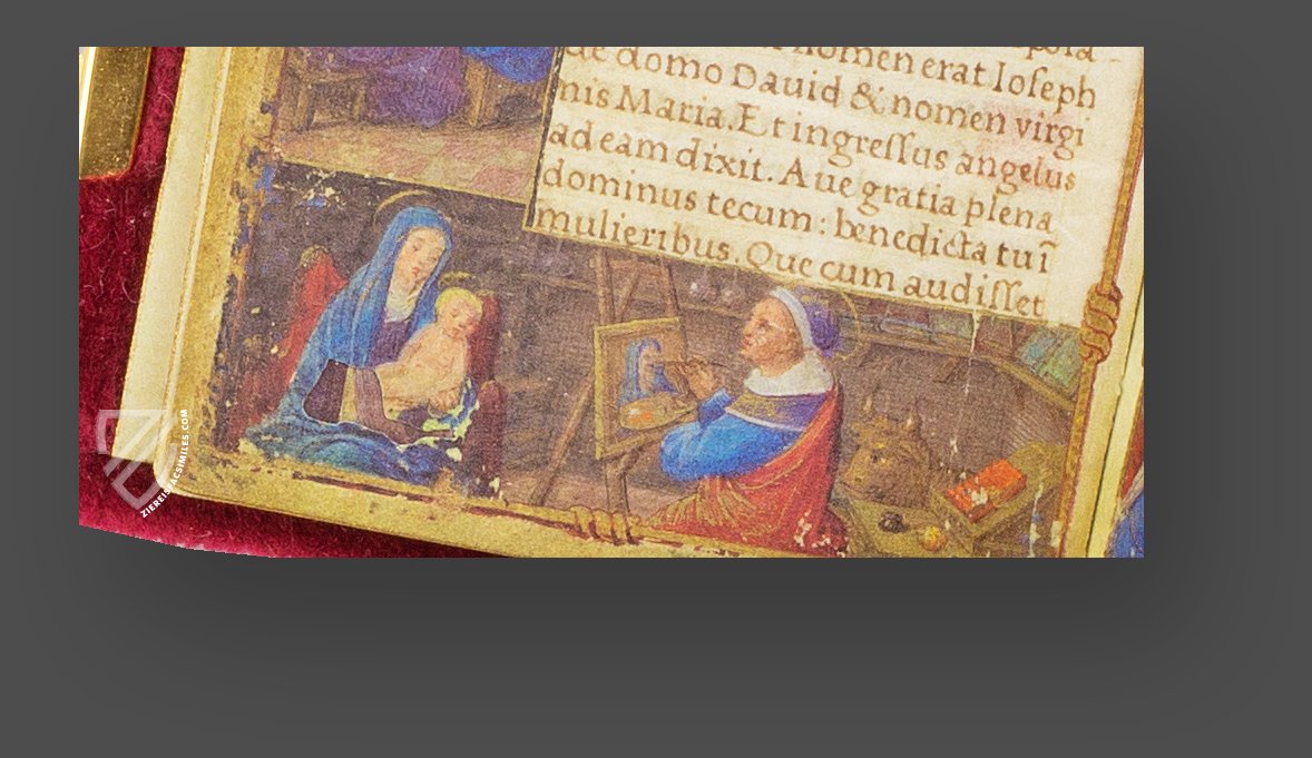 The history of the French payer book is no longer explicable today. The Viennese book dealer H.P. Kraus acquired the text after the Second World War and sold it at the end of the 1970’s to the New York art collector Alexandre P. Rosenburg. His widow bequeathed the work to the Pierpont Morgan Library 21 years later. The earlier stages of the prayer book are not known. What is known is that Claude’s husband Francois I was a great lover of Italian painting. He acquired works from Michelangelo, Titian, and Raffael as well as sending for his friend Leonardo da Vinci at his famous Renaissance court of Amboise. His popular depiction of the “Virgin of the Rocks” had a direct influence on the Master of Claude de France. He depicted the queen in her prayer book in a very similar fashion.