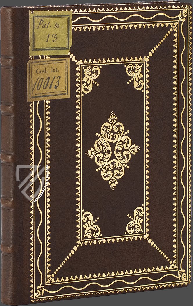 On 26 splendidly designed pages the small private prayer books contain 9 whole-page miniatures, which contain prayers and penitent psalms. The content of the illustrations depict medieval examples of the familiar story of David and Bathsheba from the Old Testament. It is explained how deep David sank in sin and guilt, and then was regain his high esteem with the Lord through penitence. This story was chosen because it demonstrates in depth to the reader the exact manner in which one should pray. This unbelievably enthralling story is embedded within the greater background of contemporary everyday life of the 16th century, which provides for many exciting discoveries. Of particular note is the depiction of the characteristically Renaissance-era colorful fashion, which is dominated by light colors in many of the scenes. For example, the scene of Bathsheba in a bath is strongly decorated with orange and features a lady of the court dressed with a feather cap. Even the depictions of architecture, which are often confined to the background, are inspirational. Next to these miniatures, the individual text pages of the Prayers of Repentance are of the highest artistic quality, which are sometimes expressed with the help of gold ink. Alongside the main illustrations, all of the ornamental leafy tendrils are also painted in the brightest of colors.