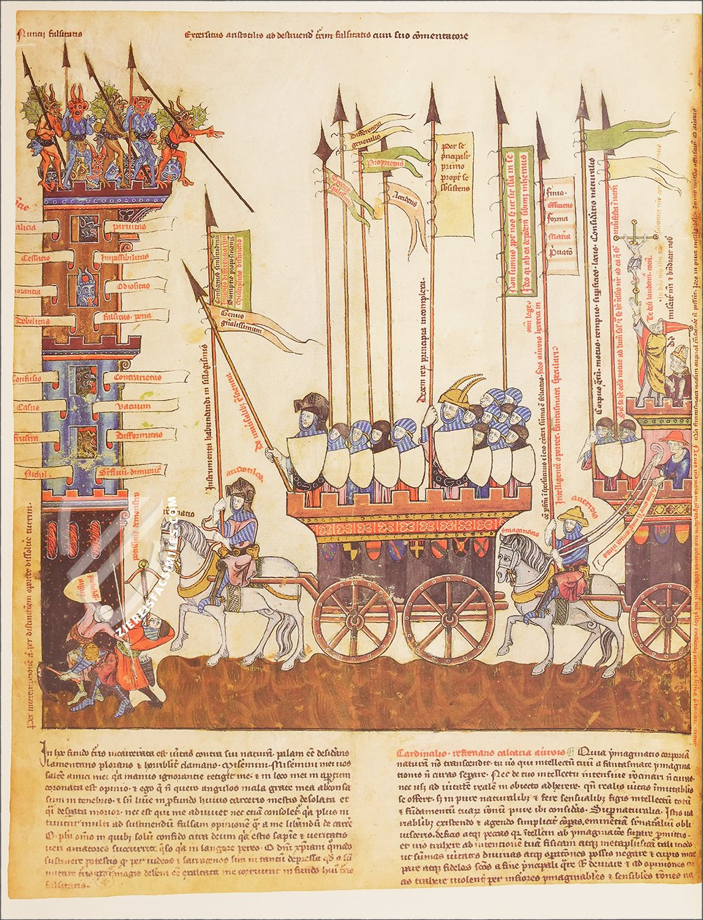 - 12 full-page and unusually realistic miniatures with scenes from Ramon Llull's life