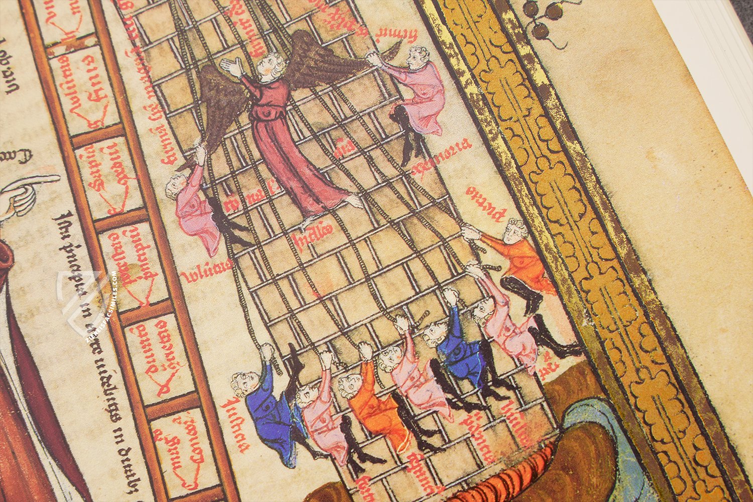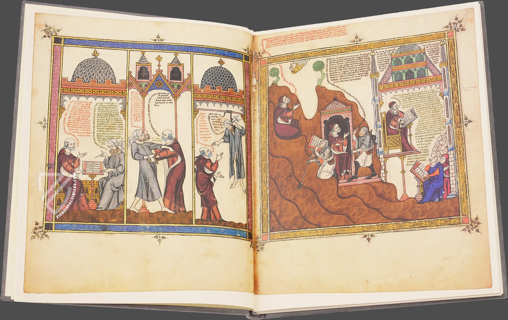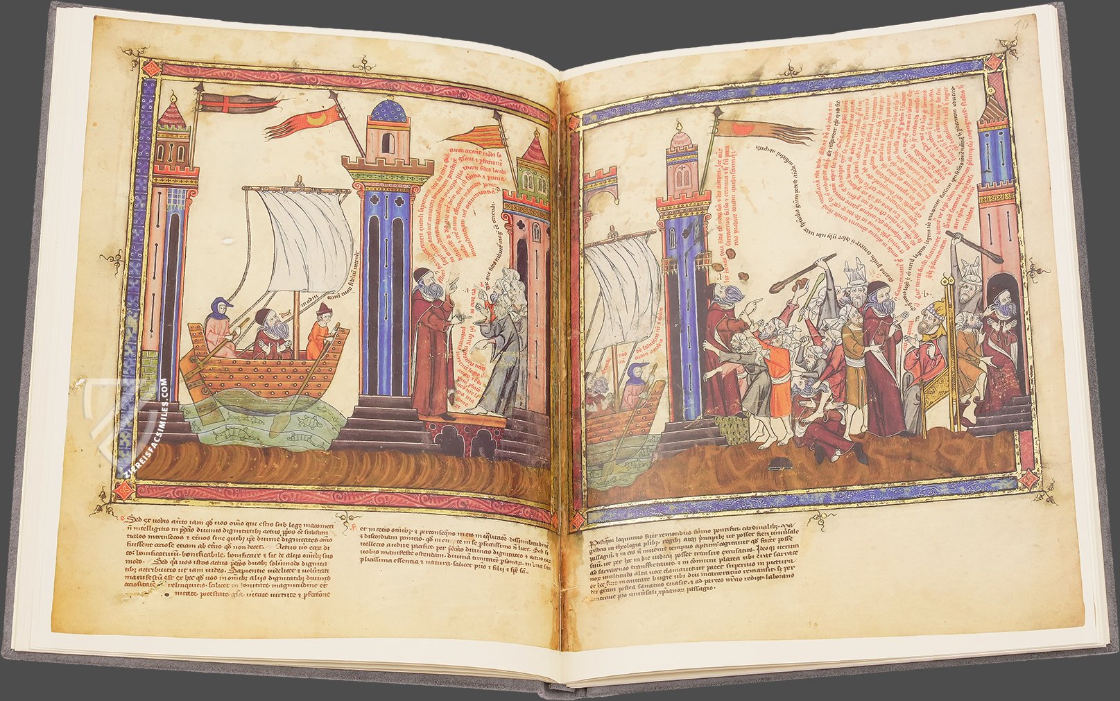 Aside from being the author of the first major work of Catalan literature, Ramon Llull (ca. 1232 β ca. 1315/16) was a mathematician, philosopher, logician, writer, and mystic from the Kingdom of Majorca. He was committed to the conversion of the Moors but used philosophy and theology to try and convince them to convert by choice rather than by force or intimidation. This splendid manuscript concerning his life and works contains twelve miniatures that are considered to be some of the finest specimens of French illumination in the early-14th century. Aside frombeing one of the most important sources on the famous Catalan philosopher, it is also one of the earliest secular biographies and its miniatures have captions like modern cartoons