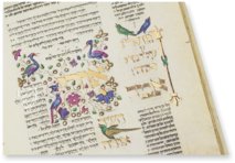 Commissioned in 1479, this North-Italian Renaissance codex is an exemplary specimen of the Judaic manuscript tradition, which is distinguished in particular by its calligraphy: the neatly and cleverly arranged Hebrew text looks as though it were printed. Lifelike human figures with detailed facial features and natural gestures as well as the extensive use of gold leaf make this a masterpiece.