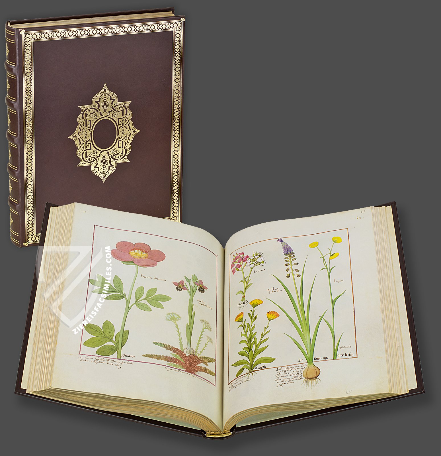 The codex originated from 15th century France and was produced for Count Charles of Angoulême and his wife Louise of Savoy. It consists of 5 book sections. These are concerned with plants and flowers, trees and resins, metals and minerals, animal products, and other materials. Following these explanations is a collection of 115 outstanding miniatures. The French text is based on the Latin explanations of the physicist Mattheaus Platerius, De medicinis simplicibus. In the 12th century, he compiled one of the most influential medical how-to manuals, which was translated into various languages during the Middle Ages. This treatise was enlarged with new findings in the French book of medicines.